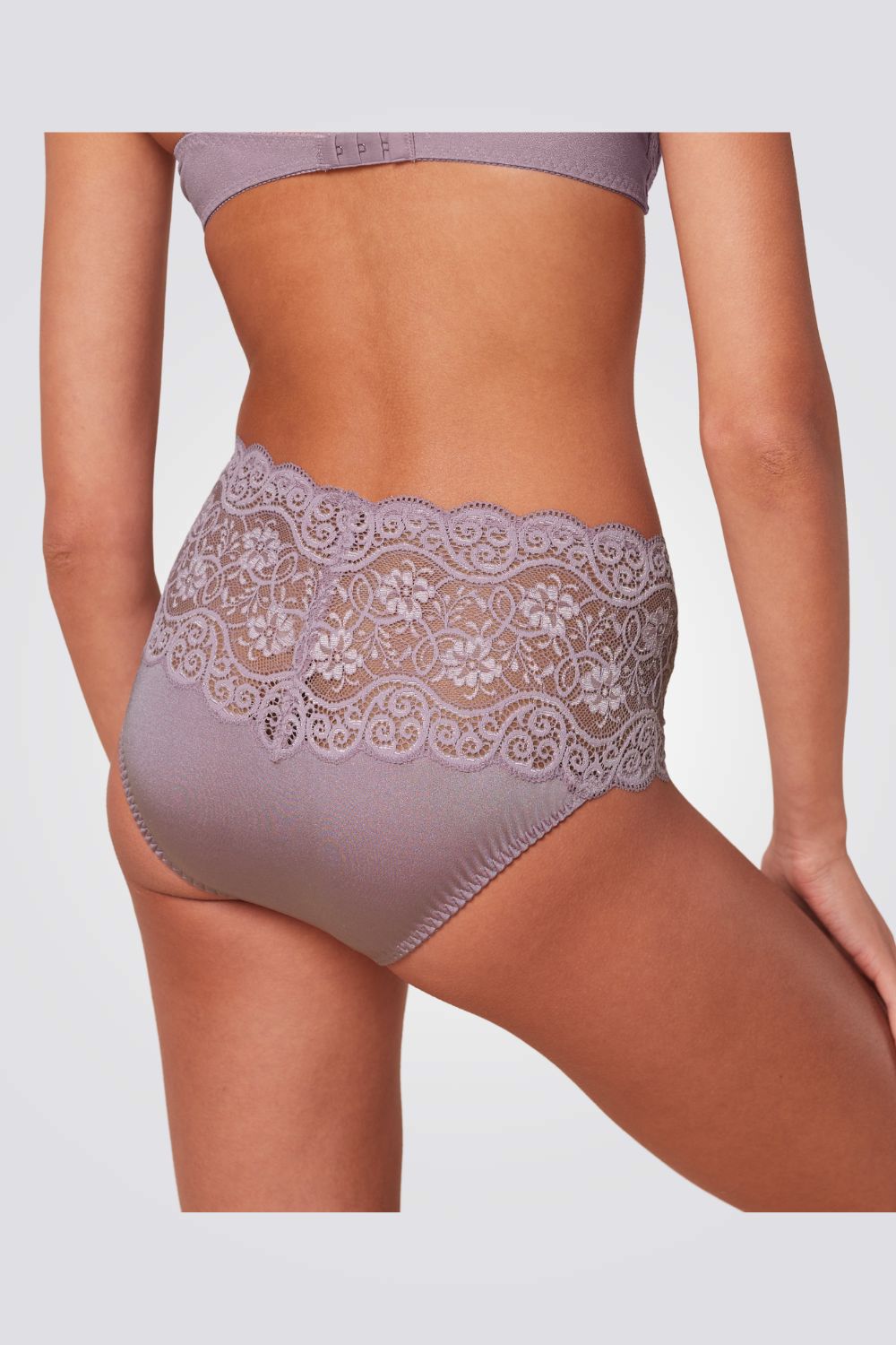 התחתונים בעלי עיטורי תחרה שקופה ופרחונית בצבע סגול