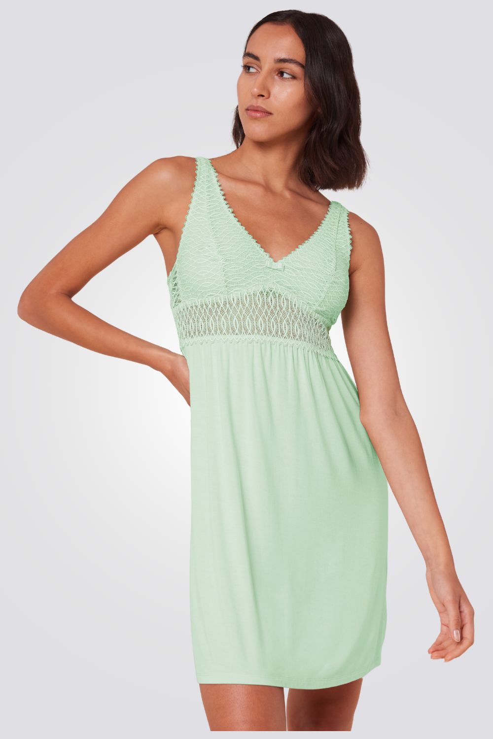 עשויה מבד טנסל נעים באיכות פרימיום עם תחרה וכתפיות מתכווננות לנוחות מושלמת.