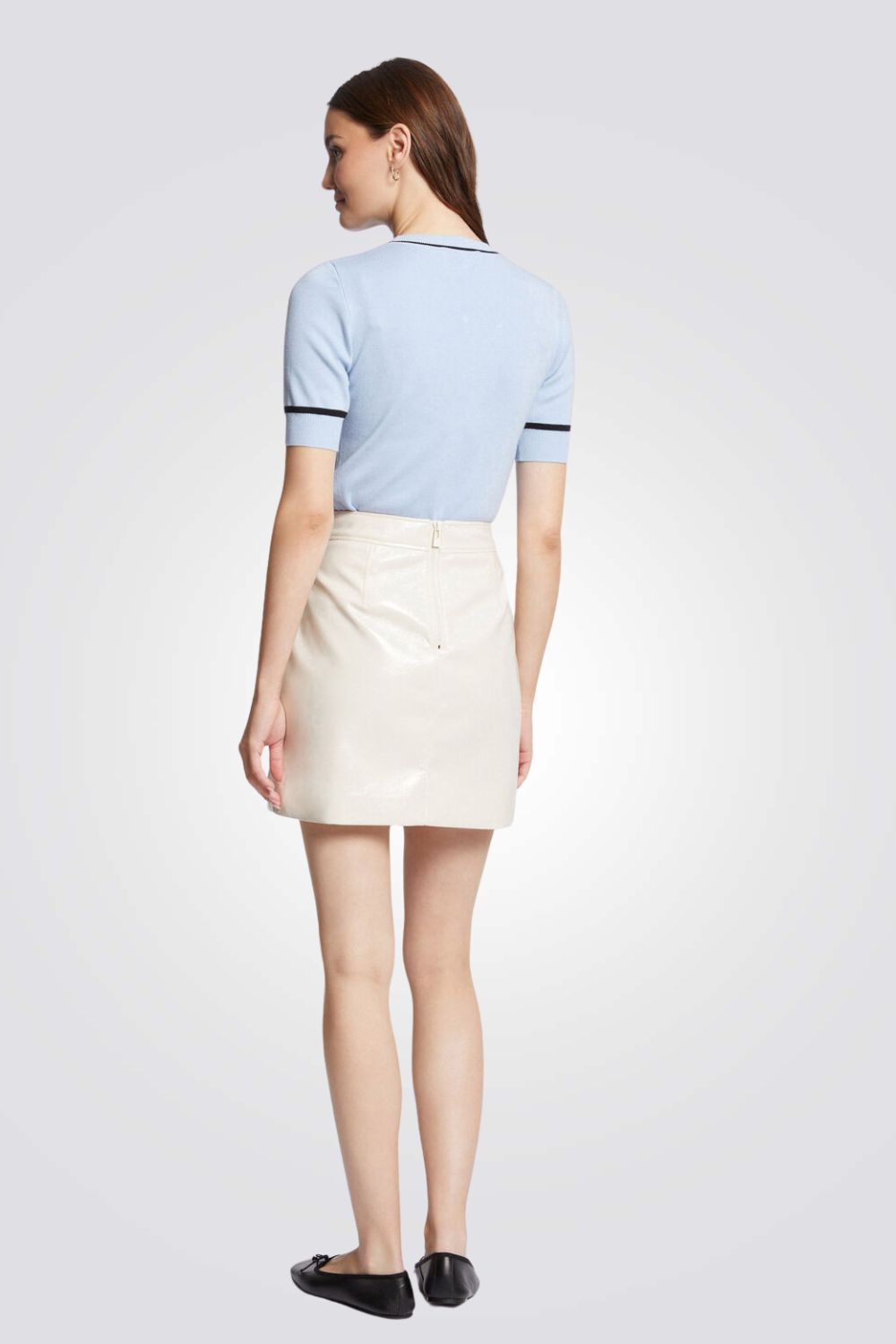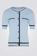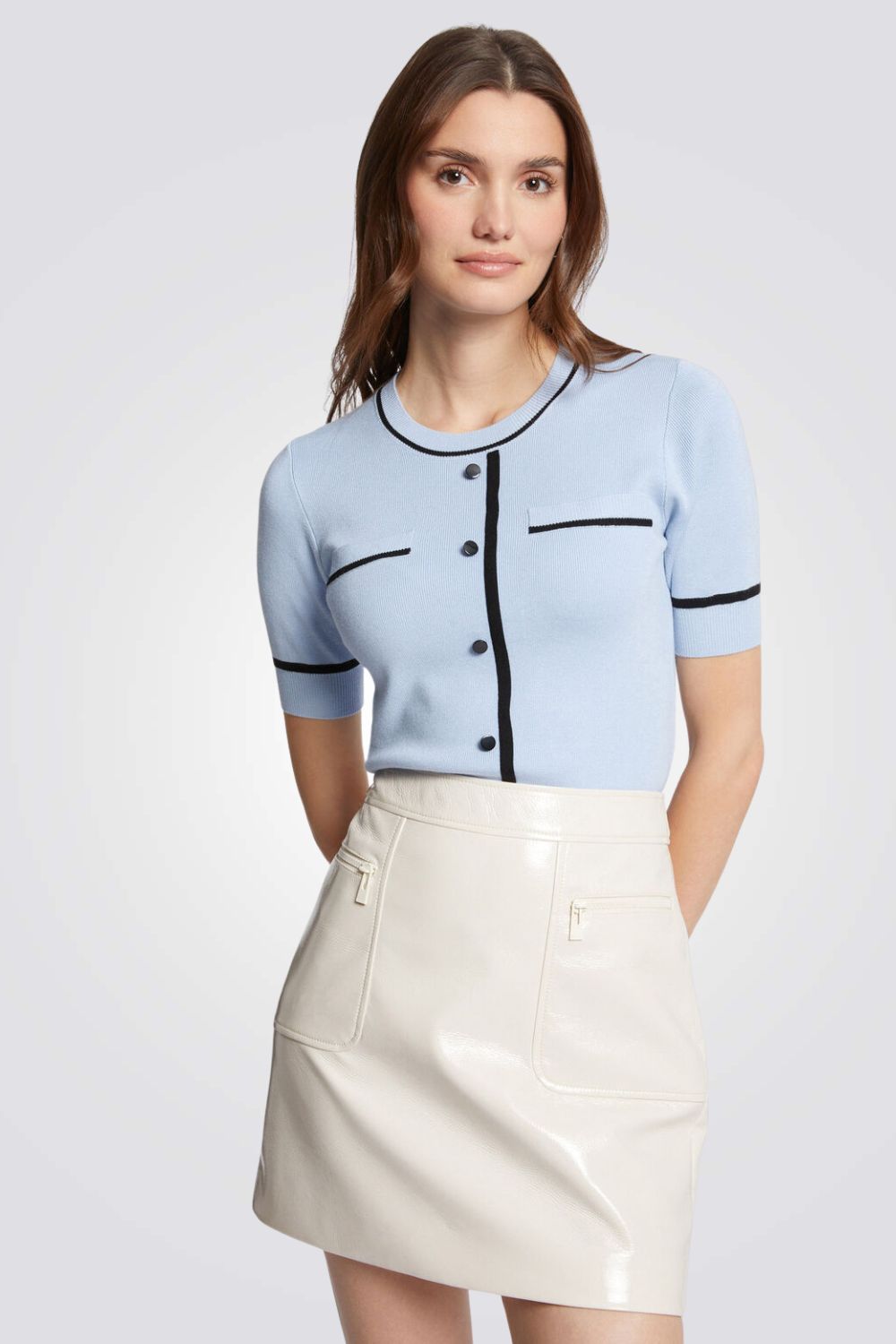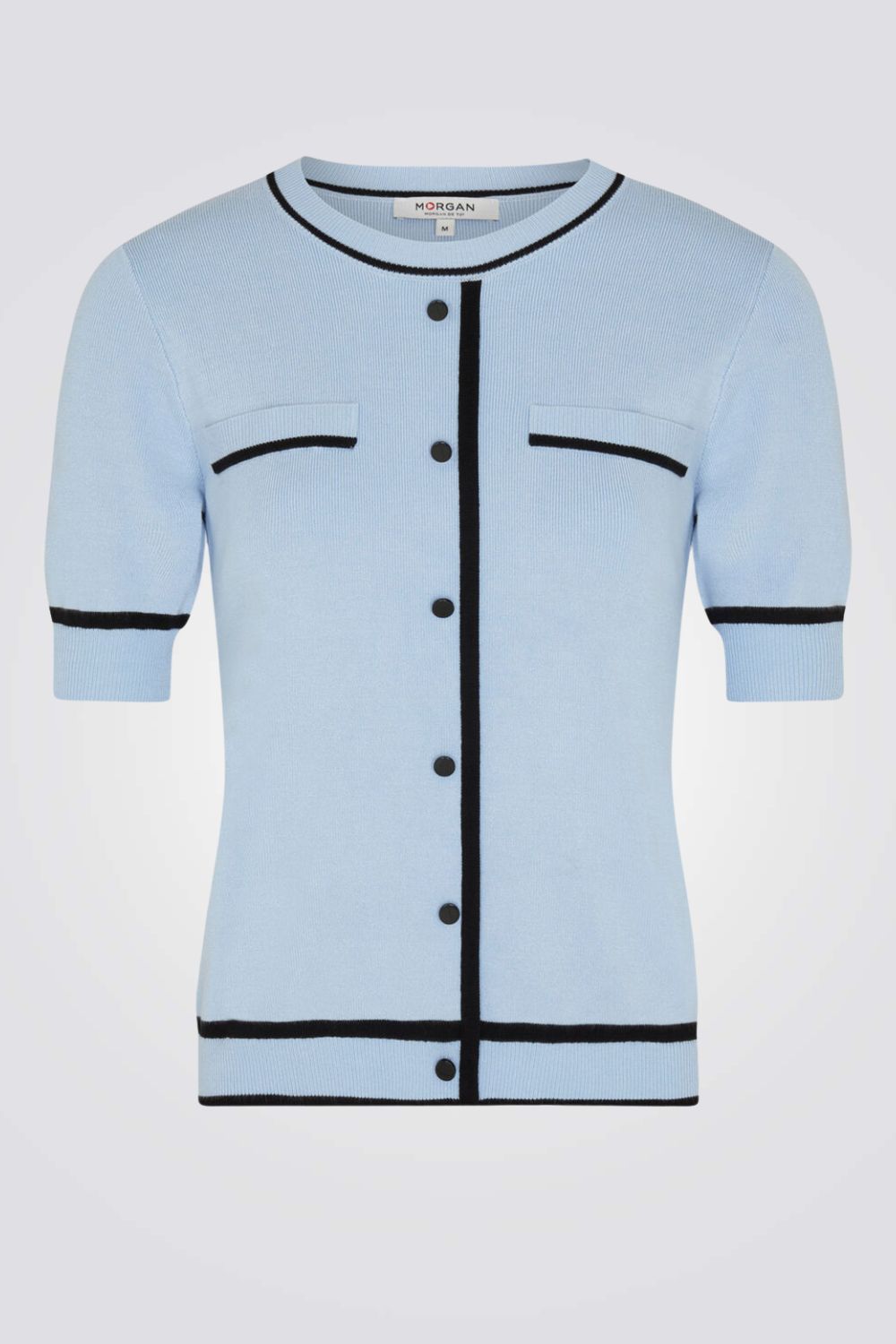 רצועות מנוגדות בקו הצווארון, השרוולים והחלק הקדמי.