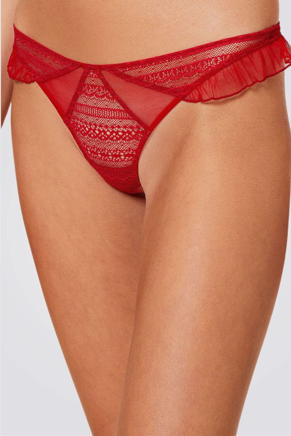 תחתוני חוטיני עם תחרה וטול SPIN בצבע אדום