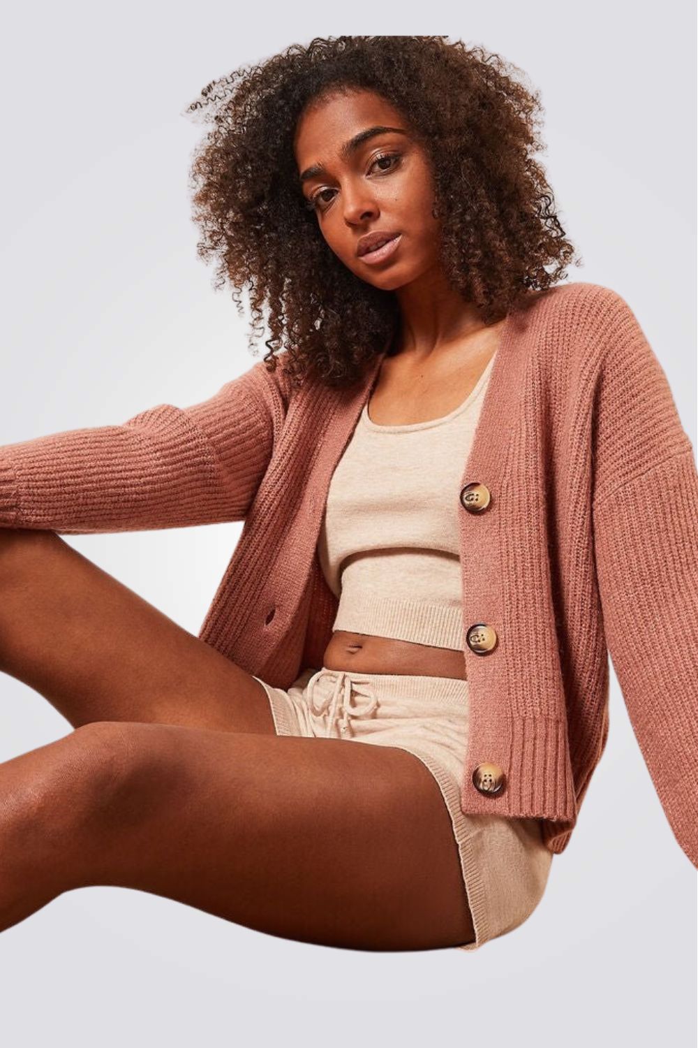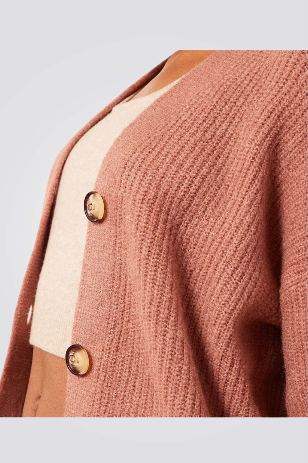 סריג קרדיגן של המותג ETAM, ארוג בד רך ונעים במיוחד בדוגמת פסים. סריג באורך המותן עם מחשוף וי בסגירת כפתורים קדמית ושרוולים בסיומת מנג'ט.