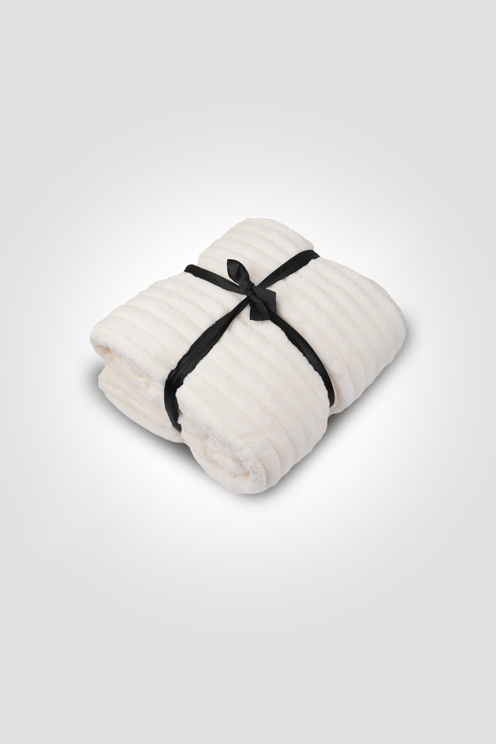שמיכת פליז פסים יחיד 150/200 ס"מ בצבע לבן