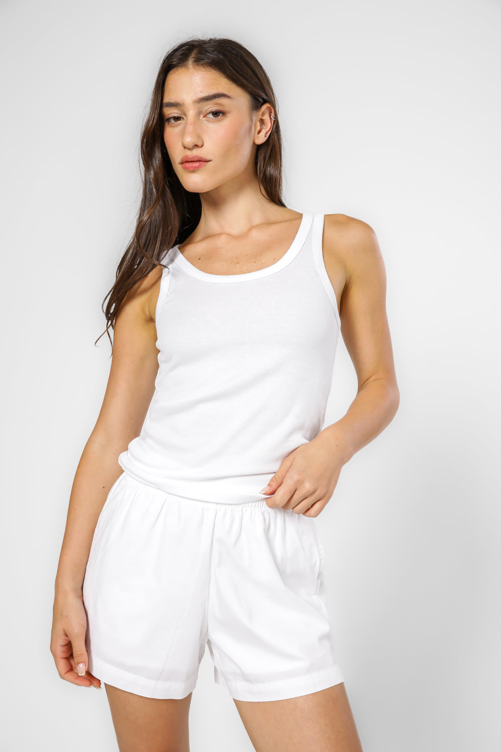 גופיית ריב מבית המותג DELTA, עשוייה מבד בטקסטורת ריב נעימה עם מפתח צוואר עגול ועמוק.