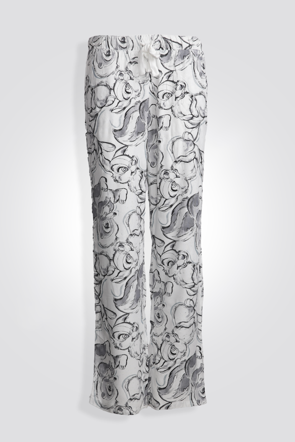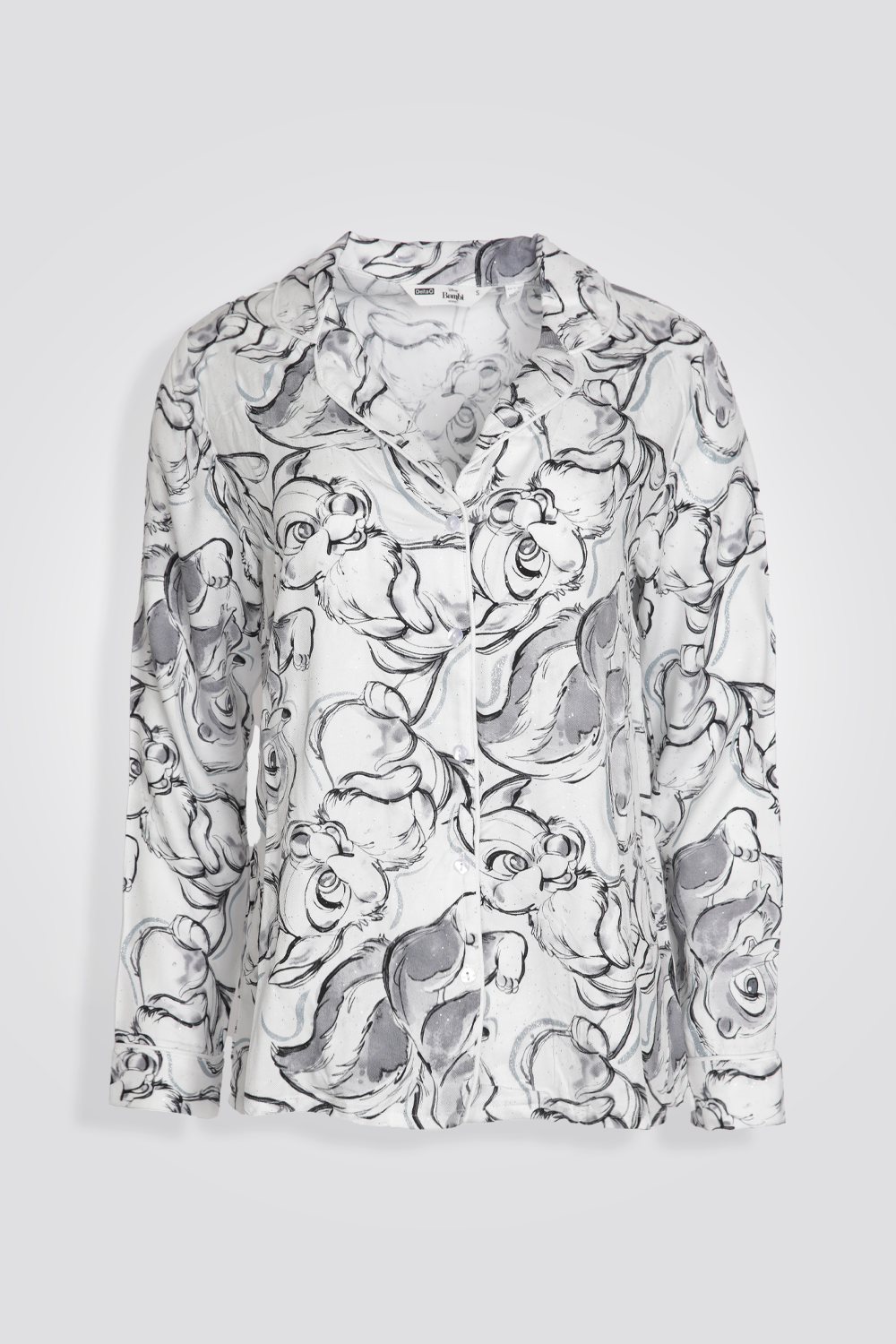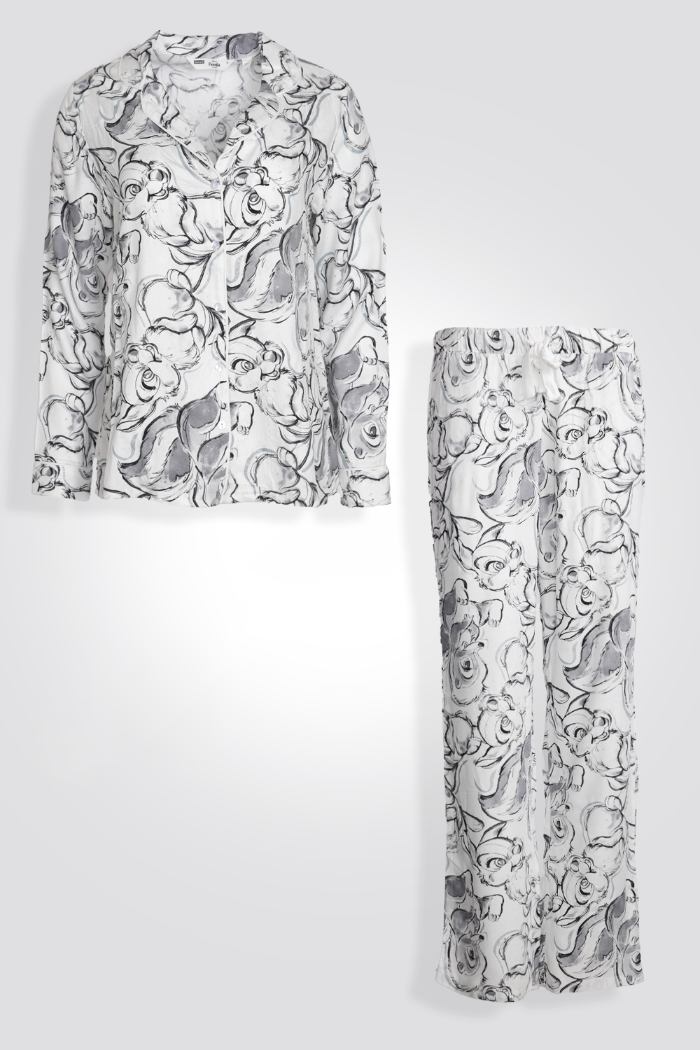 סט פיג’מה לנשים מבית המותג DISNEY העשויה מבד אריג דק ונעים בהדפס של טמפר. חולצה מכופתרת עם צווארון משולשים, שרוולים ארוכים ומכנסיים ארוכים תואמים בגזרה ישרה עם שרוכי קשירה.