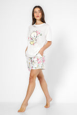 סט פיג’מה העשוי מבד סינגל ג’רסי במוטיב פרחוני של טוויטי.