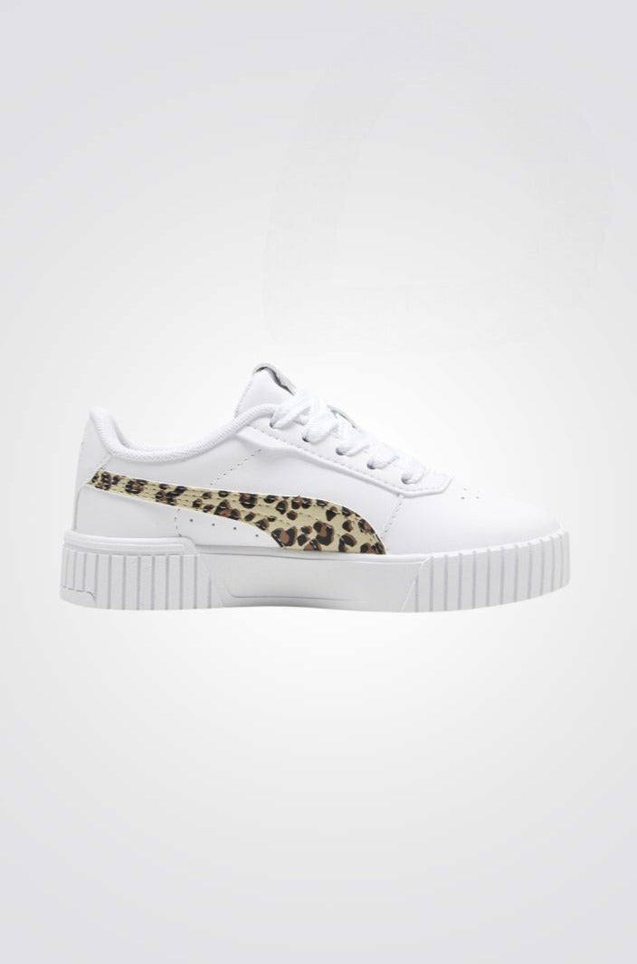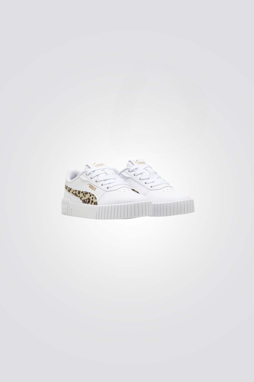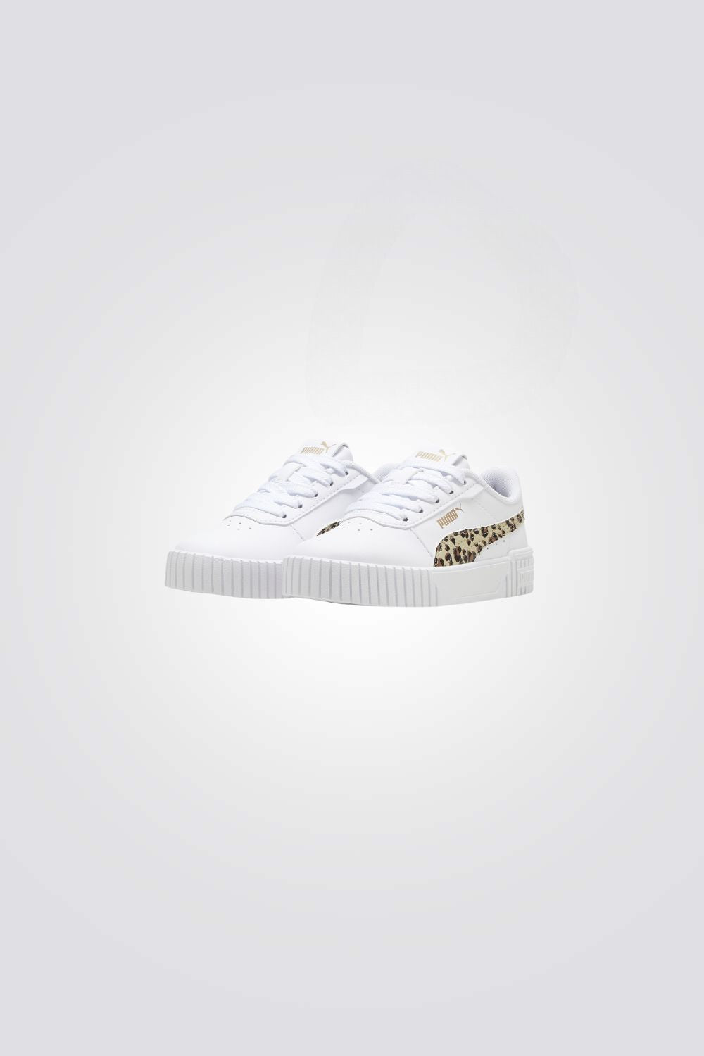 סניקרס לילדות Carina 2.0 Animal Up בצבע לבן וזהב עם הדפס מנומר