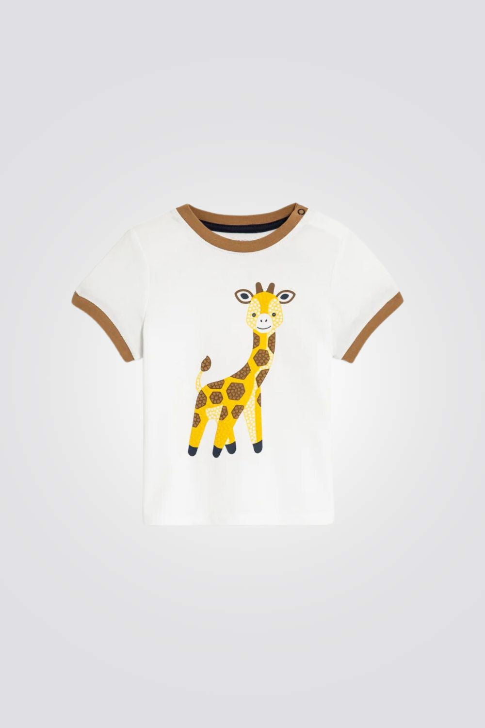 טישירט לתינוקות בצבע לבן עם הדפס ג'ירפה