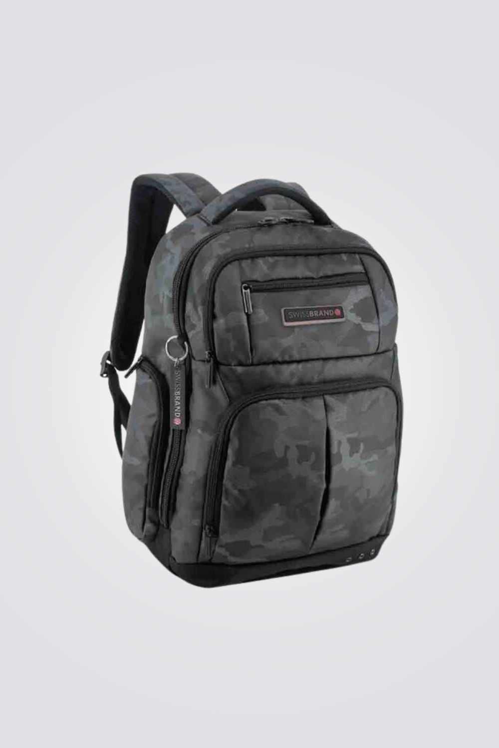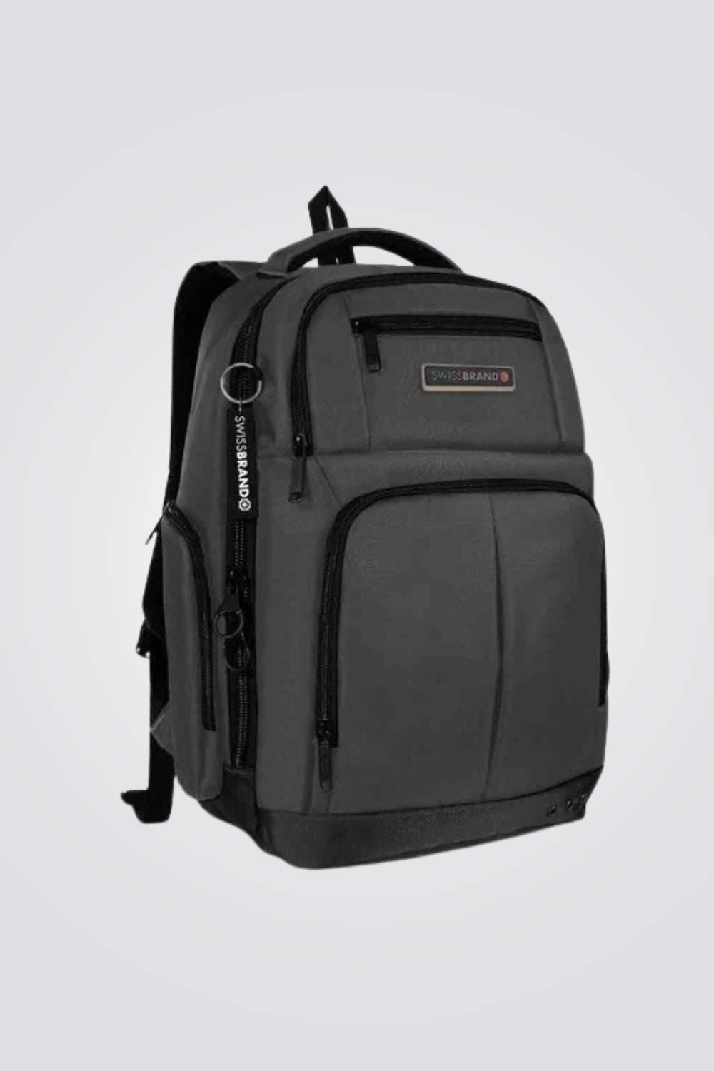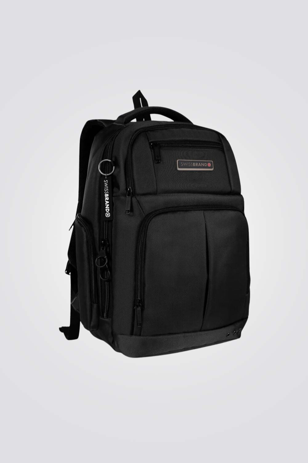 Swissbrand Wembley – תיק גב למחשב נייד של סוויסברנד (מותג שוויצרי איכותי) – תיק מאסיבי וחזק, מרובה תאים, עם גב אורטופדי ותא יעודי מרופד למחשב נייד עד 15.6" + כיס ייעודי לטבלט עד 10" – כולל רצועת הלבשה על ידית מזוודה, נהדר לנסיעות עסקים וכן כתיק גב לסטודנט ולתלמידים.