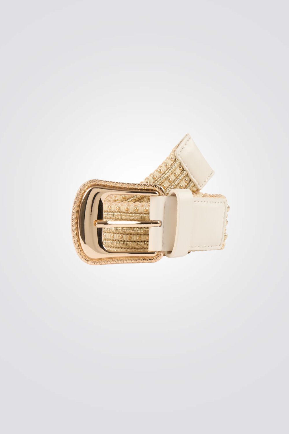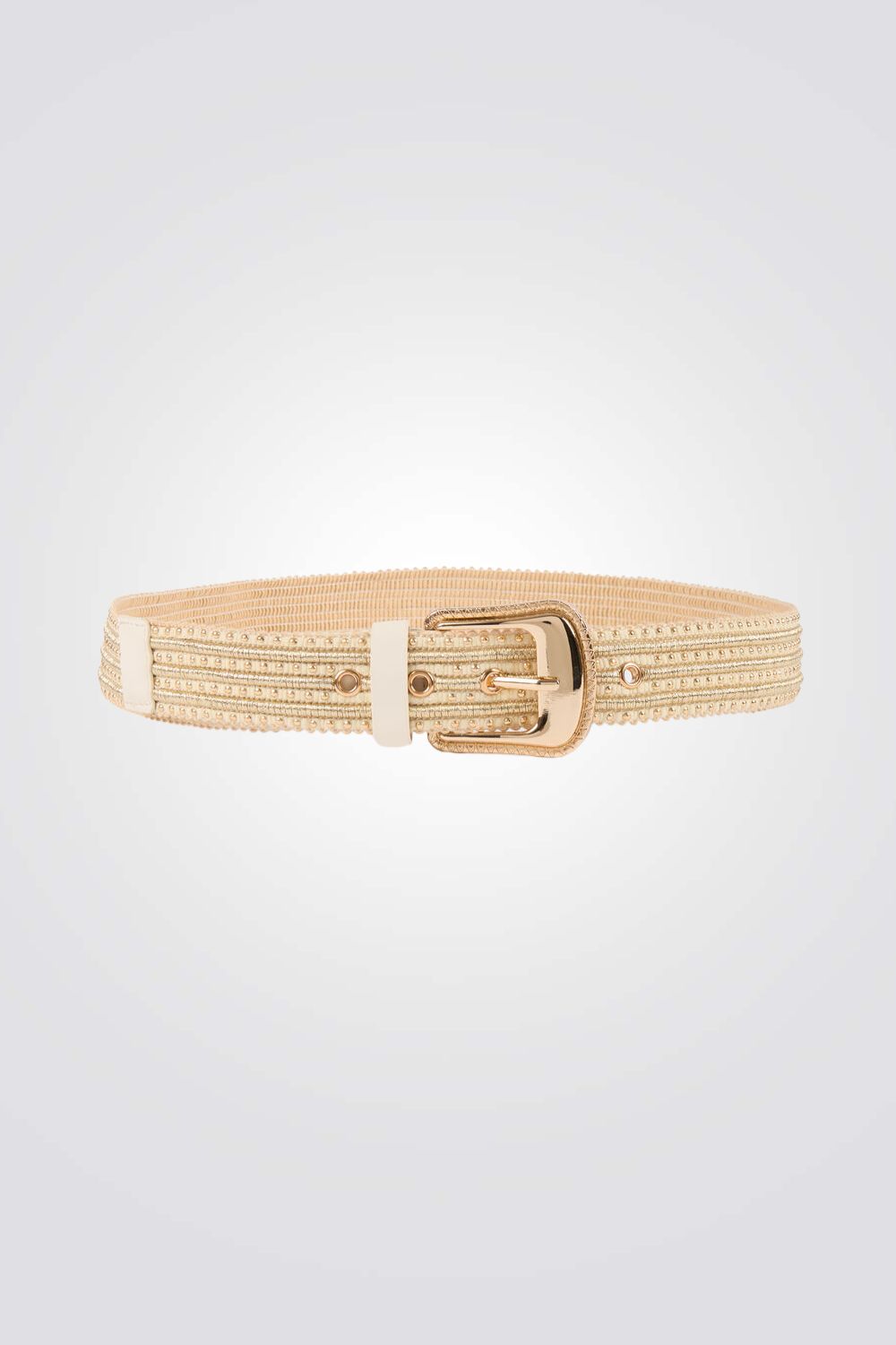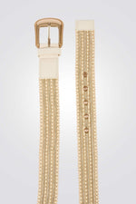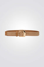 חגורה לנשים מבית המותג MORGAN, עם עיטור ניטים ואבזם זהוב.