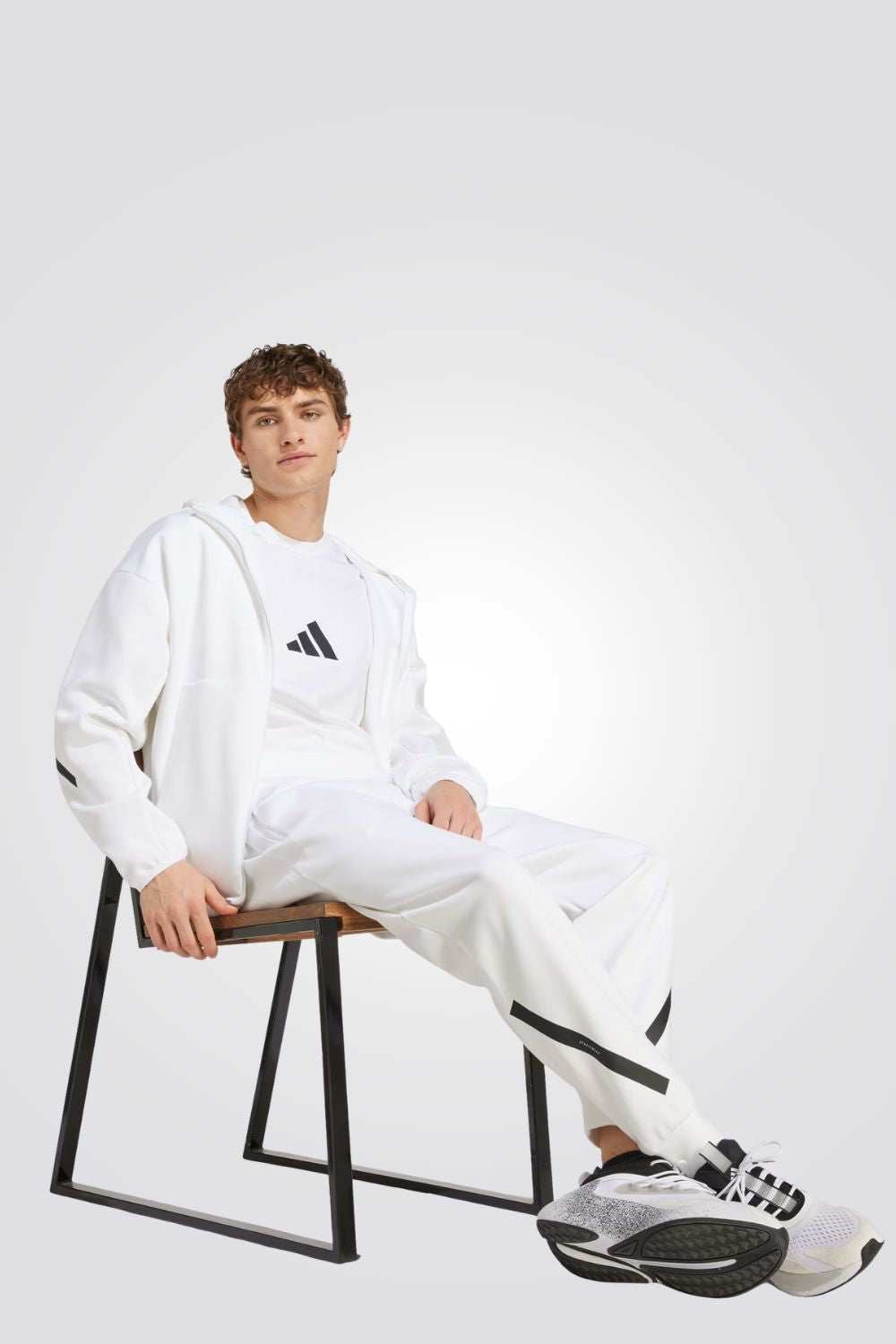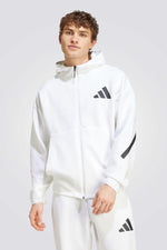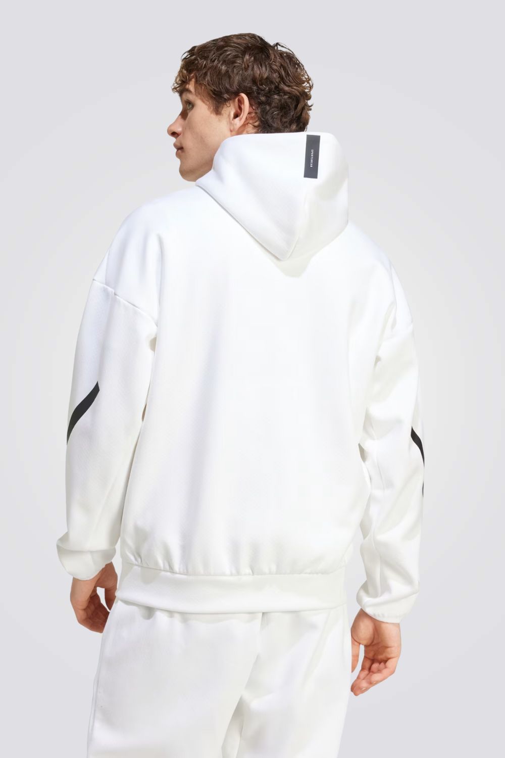 סווטשירט לגברים מבית המותג ADIDAS, בצבע לבן , בעל 3 שכבות העוזר לשימוש חום, עם קפוצ'ון , עשוי מלפחות 70% חומרים ממוחזרים, סגירת רוכסן וכיסים צדדיים עם סגירת רוכסן לנוחות מירבית.