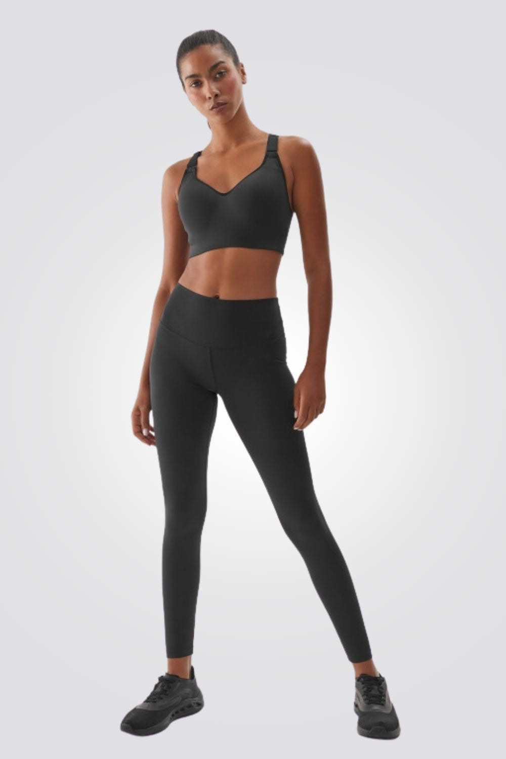 טייץ לנשים מבית המותג F4,בצבע שחור, קליל ונוח, מתאים לאימונים בזכות הבד מנדף הזיעה .