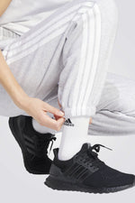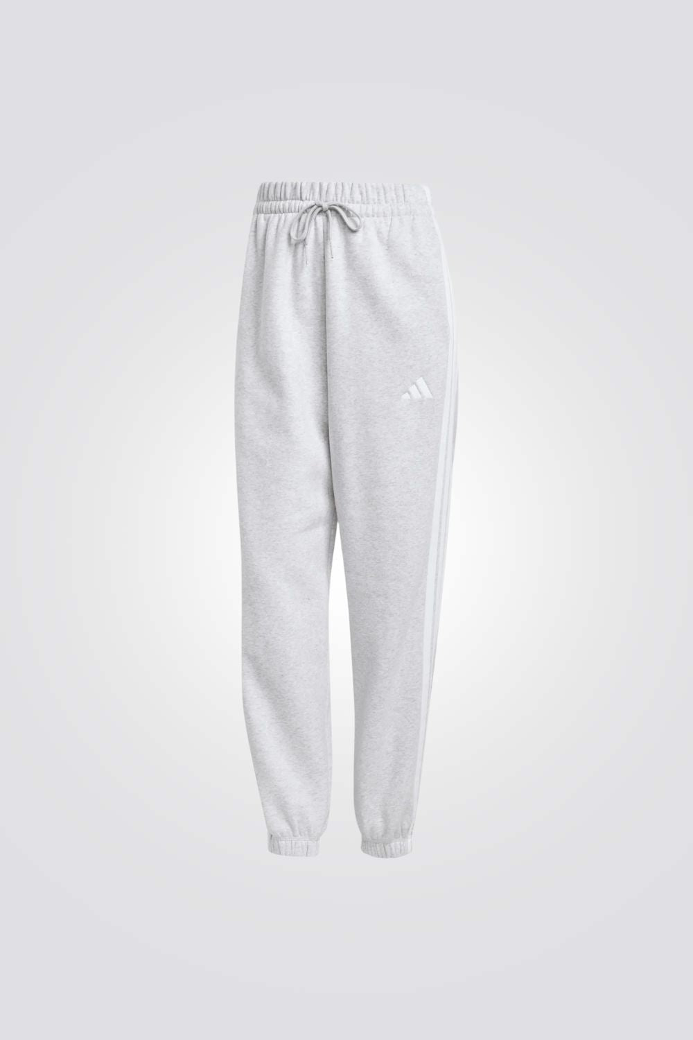 מכנסי טרנינג לנשים מבית המותג ADIDAS, בצבע אפור, עשויים מבד פליז רך , נעים ומחם, מאפשר חופש תנועה רחב , בגזרה רפויה ומחמיאה ומתאימים לשימוש יום יומי. עשויים מלפחות 70% חומרים ממוחזרים.
