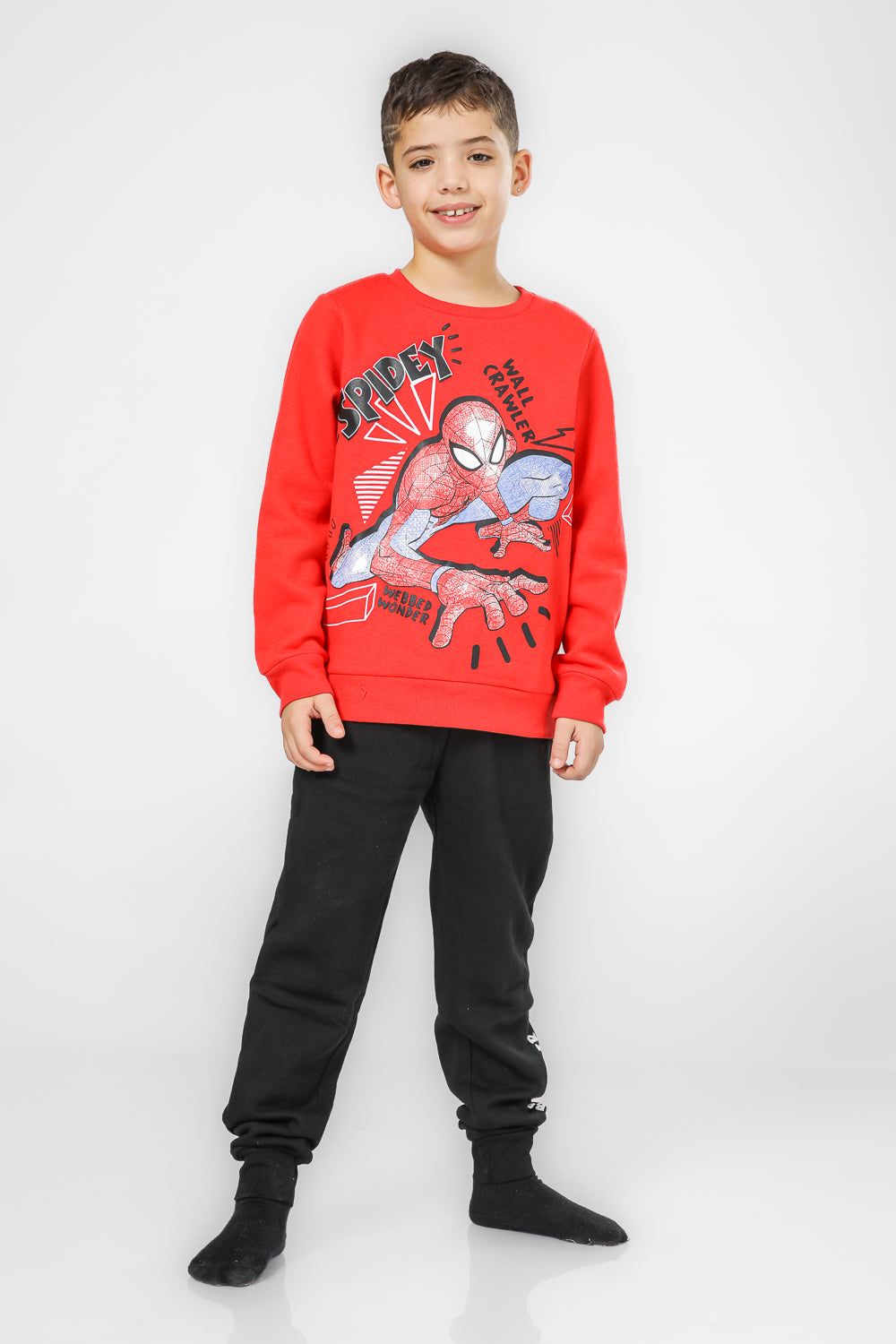 סט פיג’מה מבד פוטר נעים עם הדפס סקיצה של ספיידרמן. חולצה עם צווארון עגול ושרוולים ארוכים בסיומת מנג’ט, מכנסיים ארוכים בסיומת מנג’ט עם גומי במותניים.