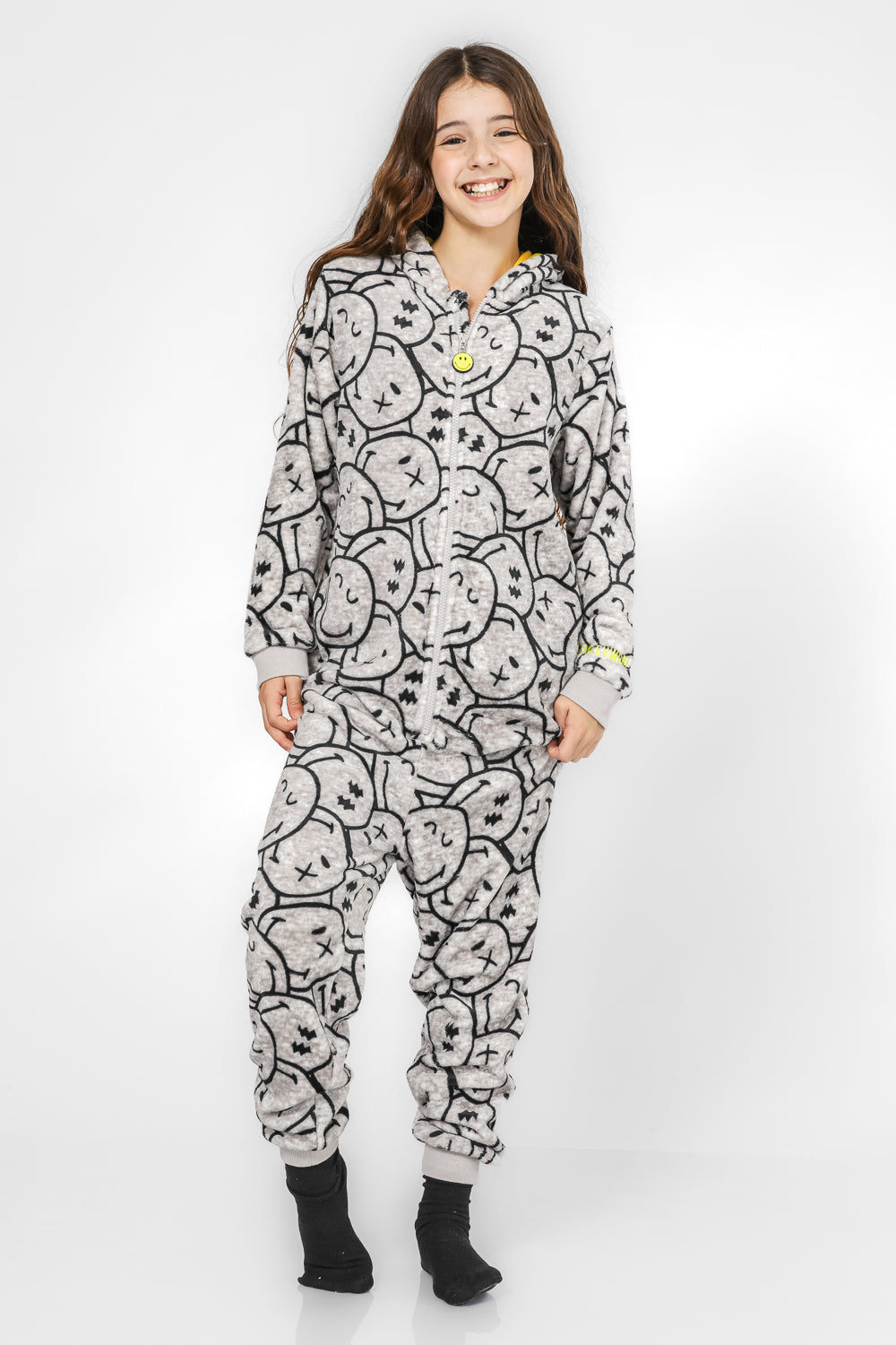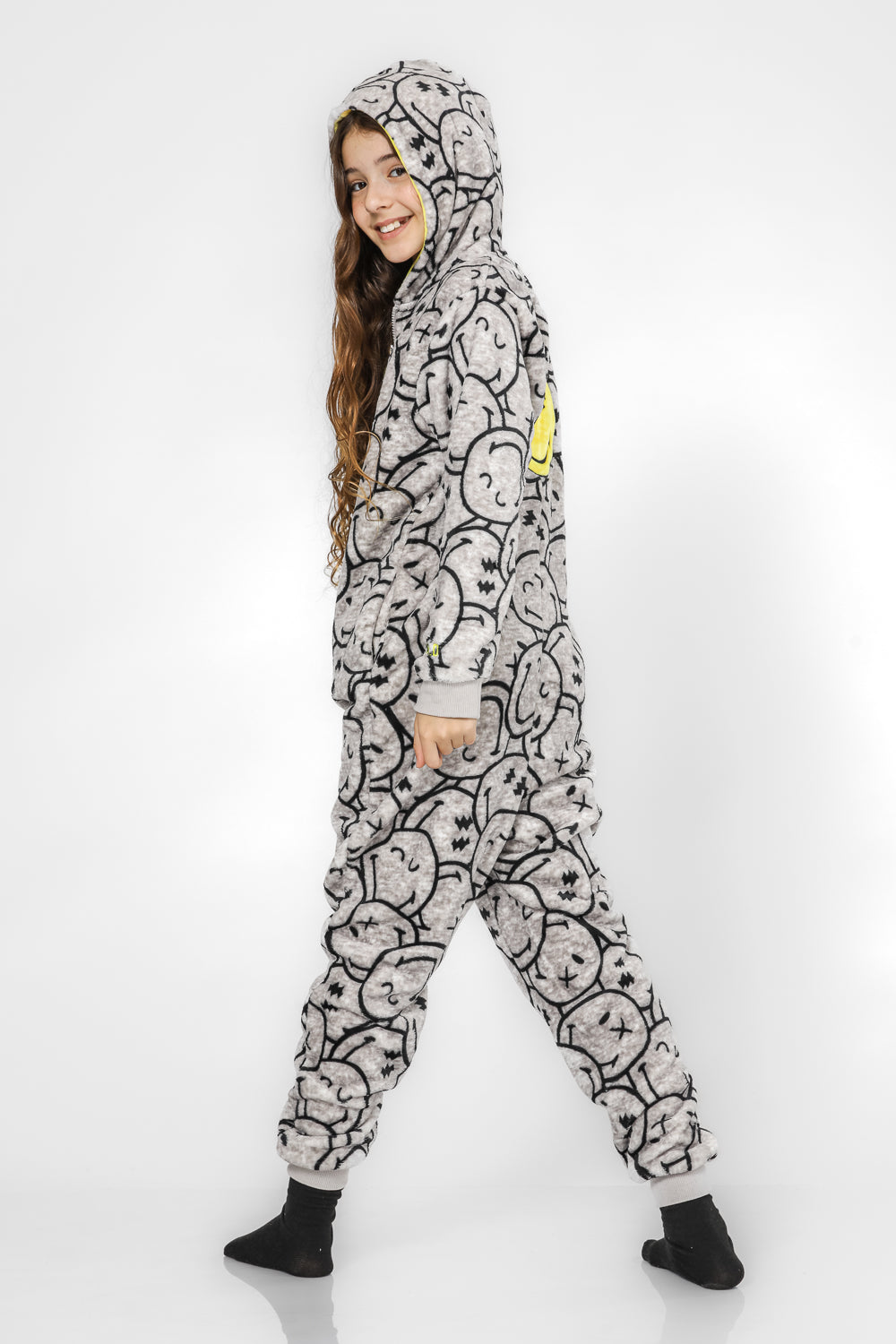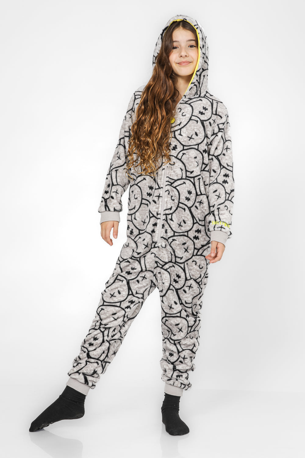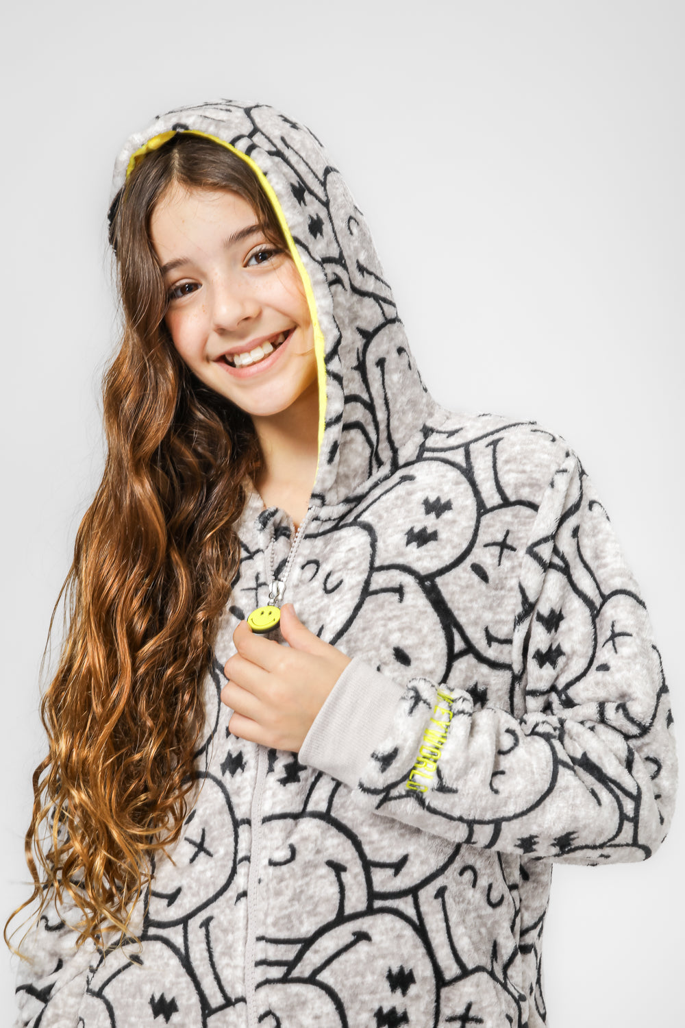 וואנזי מפנק לחורף מבד פוטר רך ומחמם במוטיב סמיילי, קפוצ’ון מחובר ופתיחה וסגירה נוחה עם רוכסן קדמי.