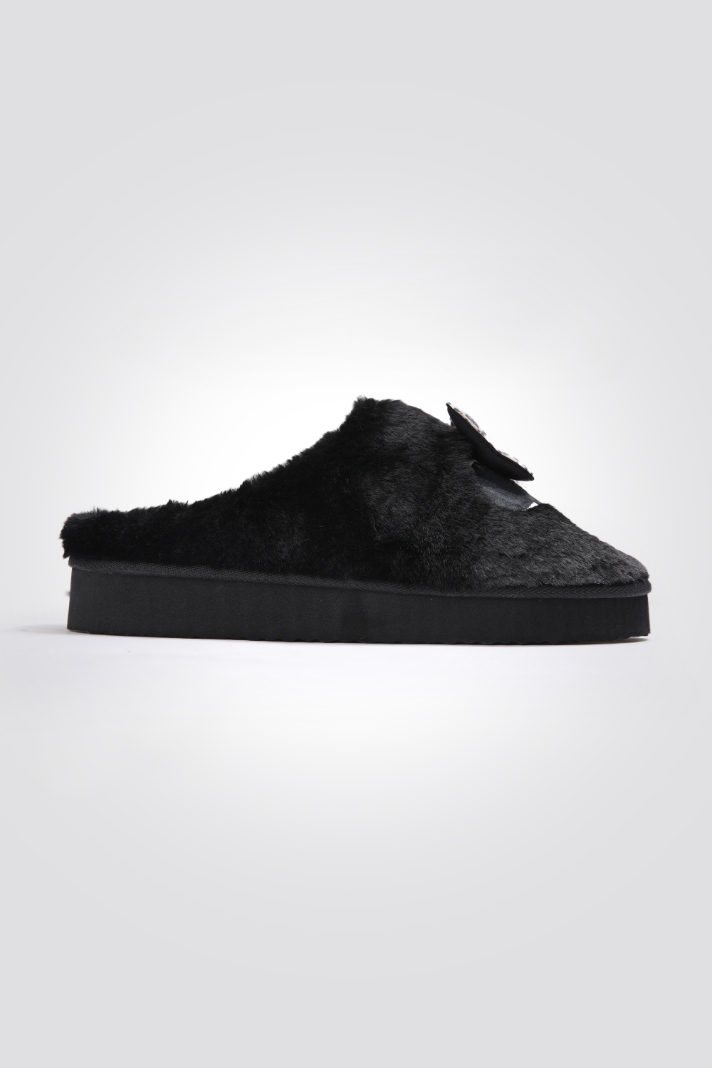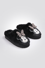 נעלי בית לנשים מבית המותג DISNEY העשויים מבד פלאפי נעים ורך בגזרת כפכף סגור עם סוליית פלטפורמה קשיחה במוטיב מיני מאוס.
