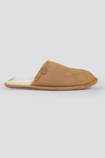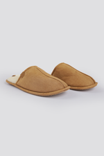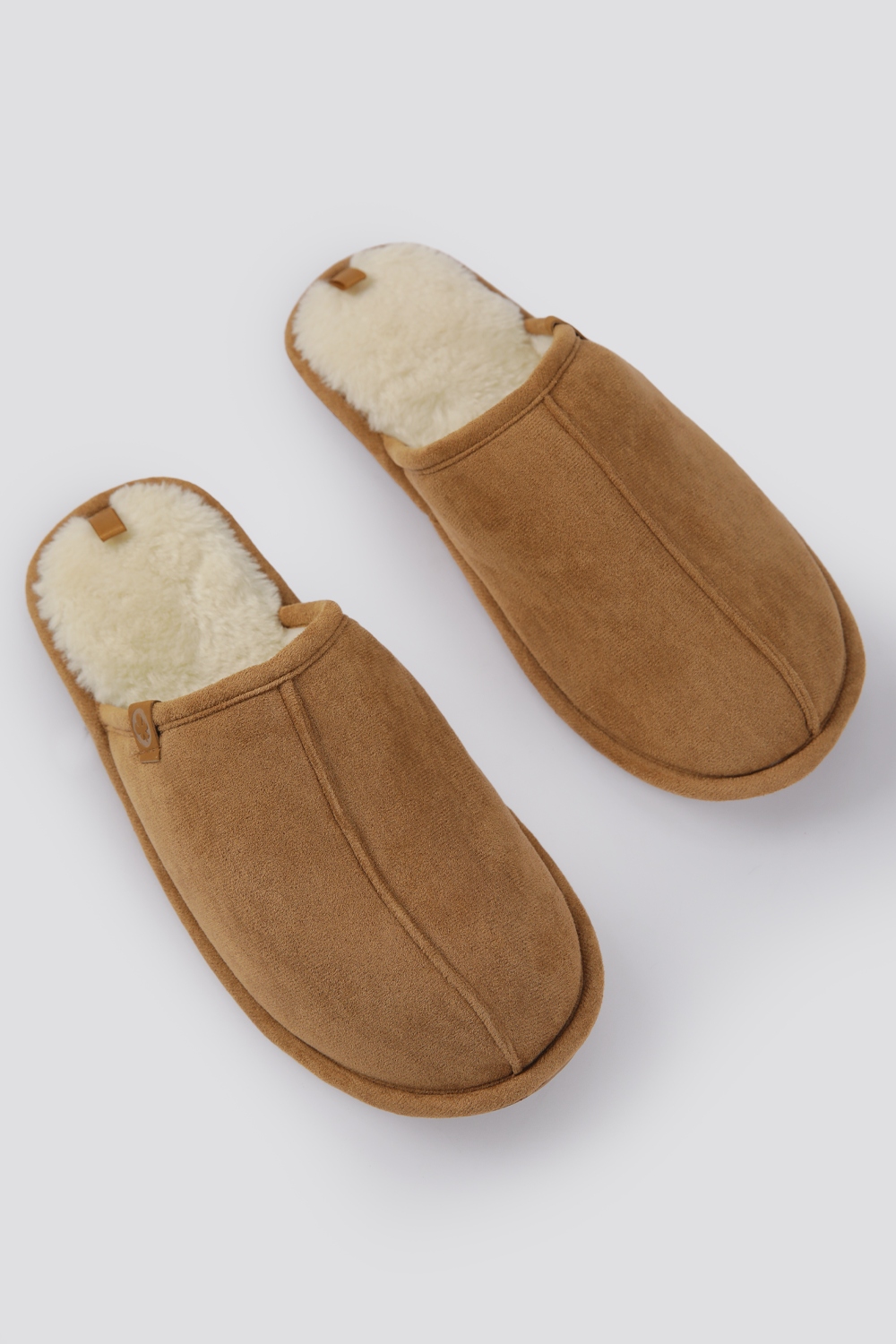 נעלי בית לגברים בצבע כאמל דמוי פרווה