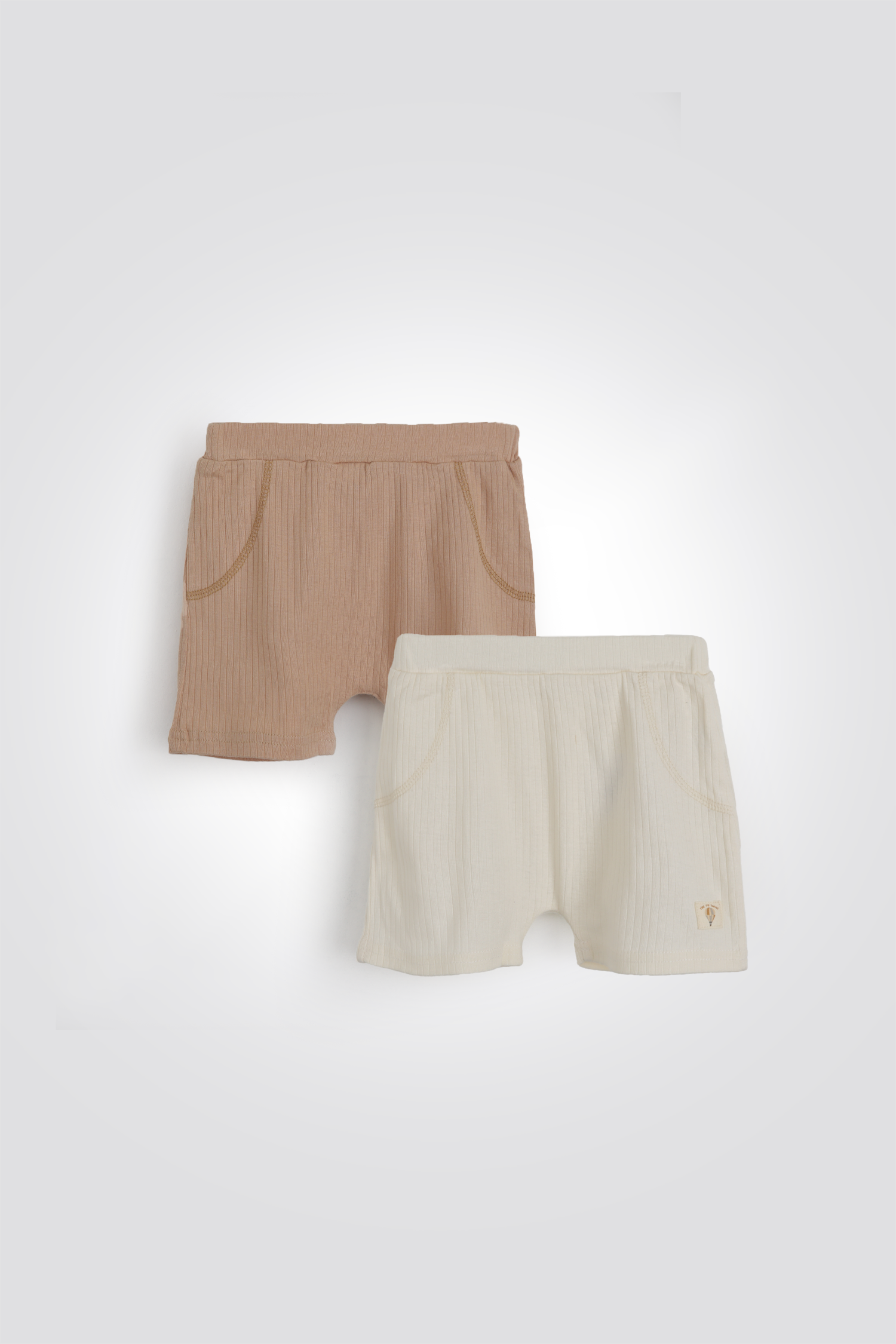 שני זוגות מכנסיים קצרים לתינוקות מבית המותג DELTA העשויים מבד בטקסטורת ריב נעימה.