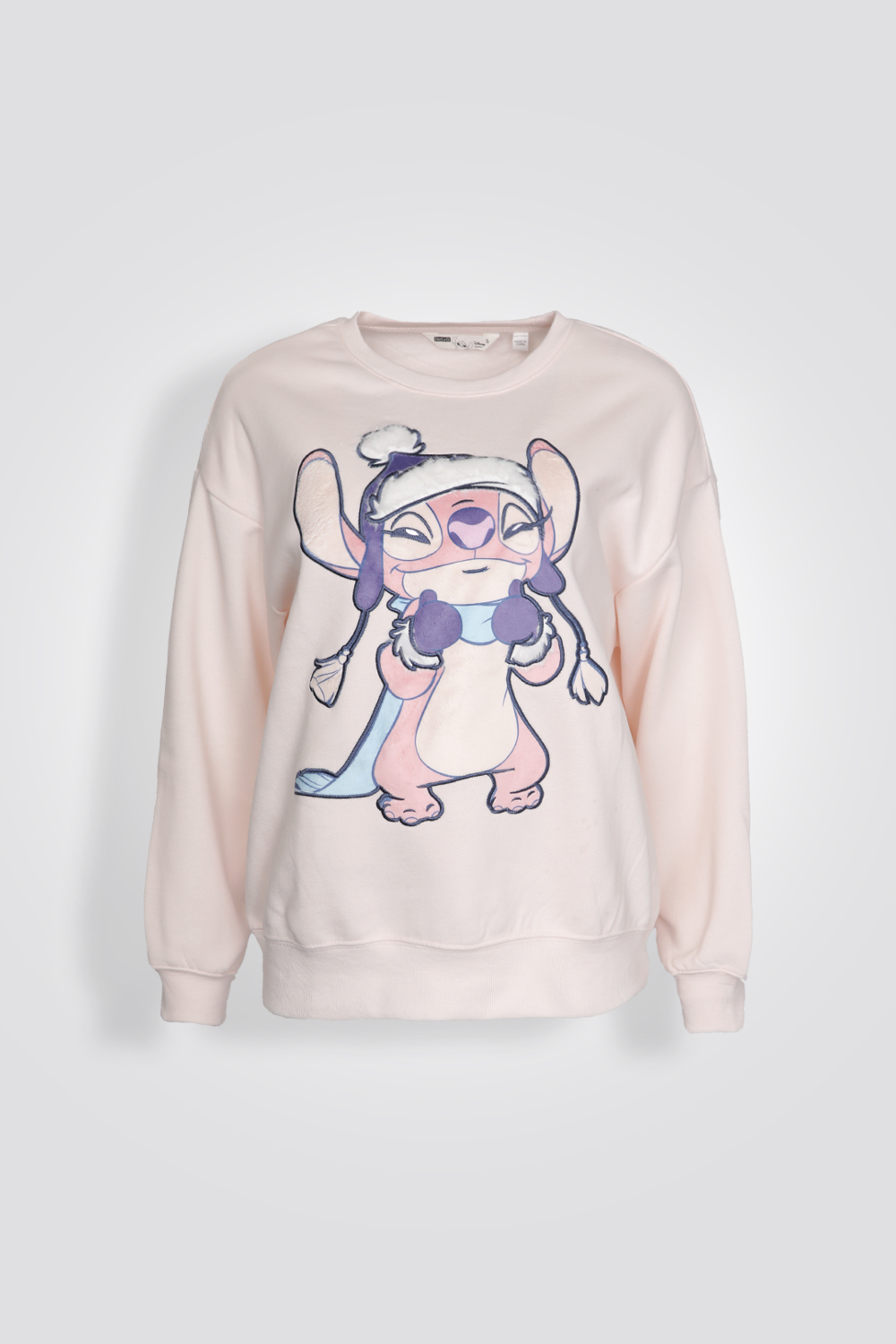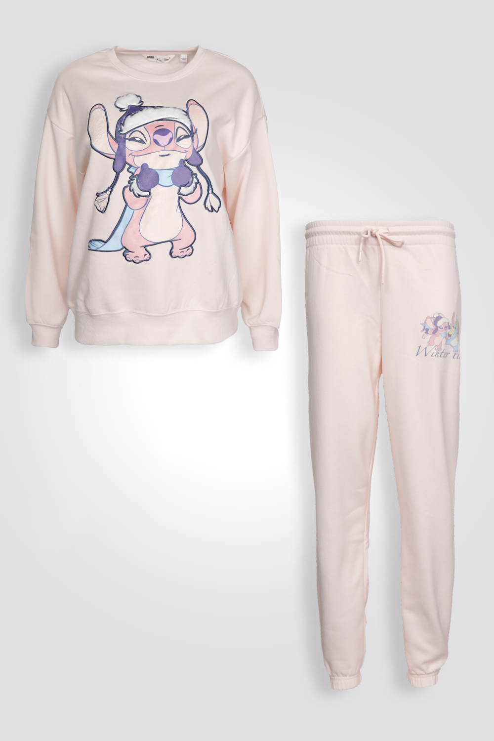 סט פיג'מה לנשים מבית המותג DISNEY העשויה מבד פוטר רך ומחמם עם הדפס מתוק של אנג’ל. חולצה עם צווארון עגול ושרוולים ארוכים עם סיומת מנג’ט ומכנסיים ארוכים עם גומי במותניים וסיומת מנג’ט.