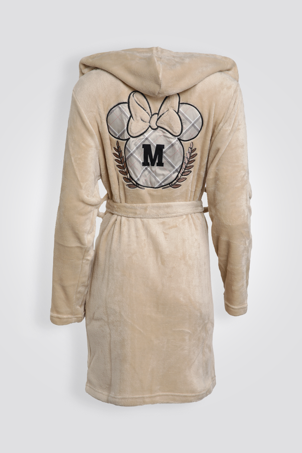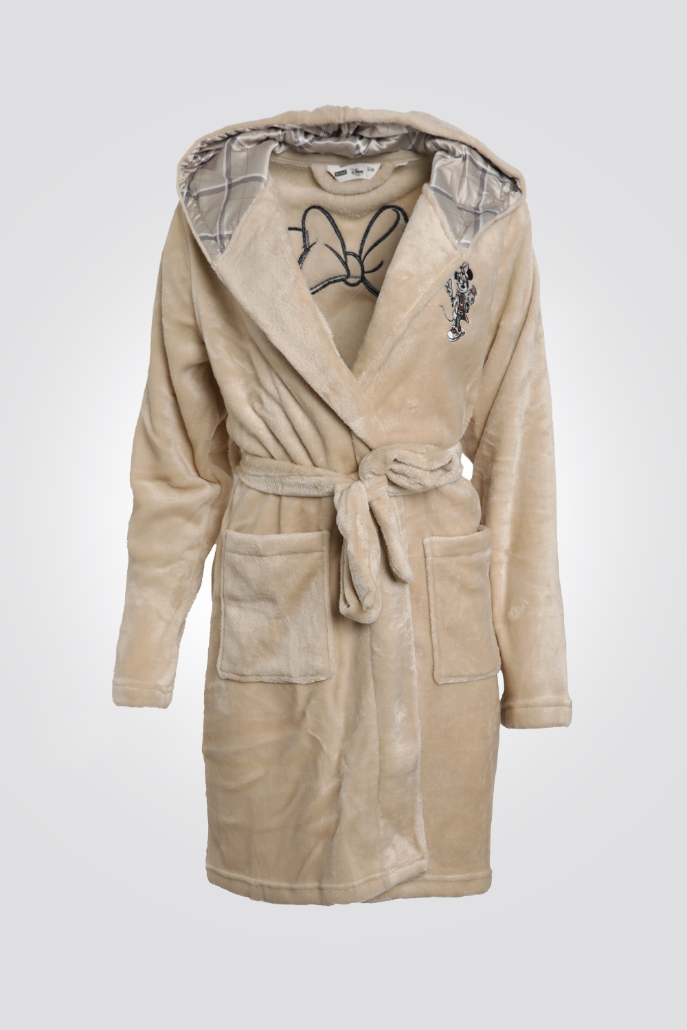 חלוק פרוותי לנשים מבית המותג DISNEY העשוי מבד פלאפי פרוותי ורך עם הדפס של מיני מאוס עם קפוצ’ון, חגורת קשירה וכיסים בצדדים לנוחות מירבית.