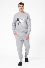 סט פיג'מה לגברים מבית המותג DISNEY העשוי מבד פוטר רך ומחמם עם הדפס של מיקי מאוס. חולצה עם צווארון עגול, שרוולים ארוכים וסיומת מנג’ט ומכנסיים ארוכים עם גומי במותניים וסיומת מנג’ט.