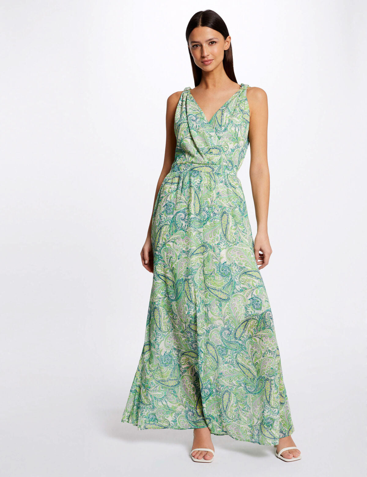 שמלת מקסי בשילוב גווני ירוק