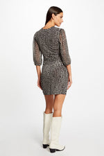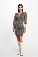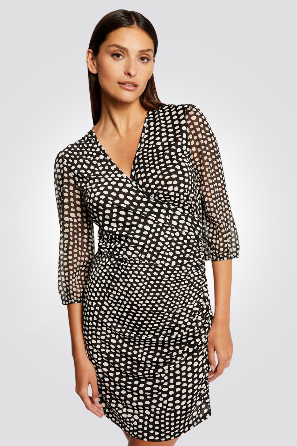 שמלת מיני מעטפת מנוקדת שחור לבן