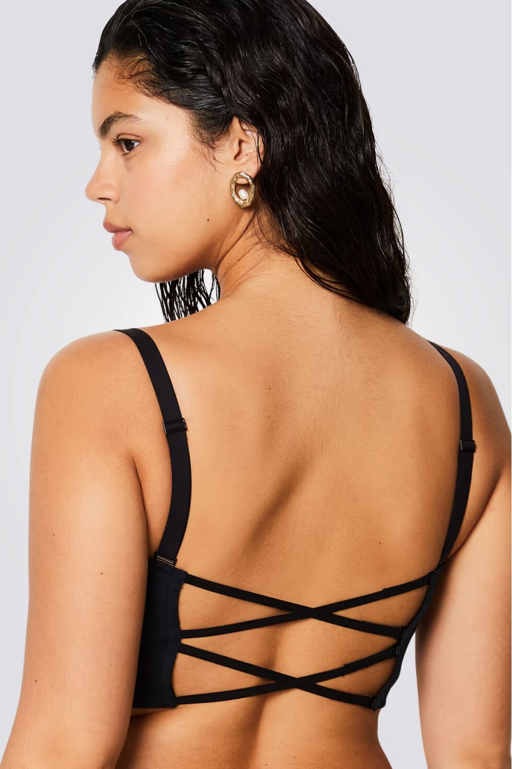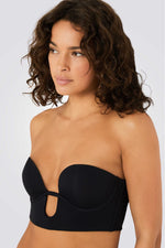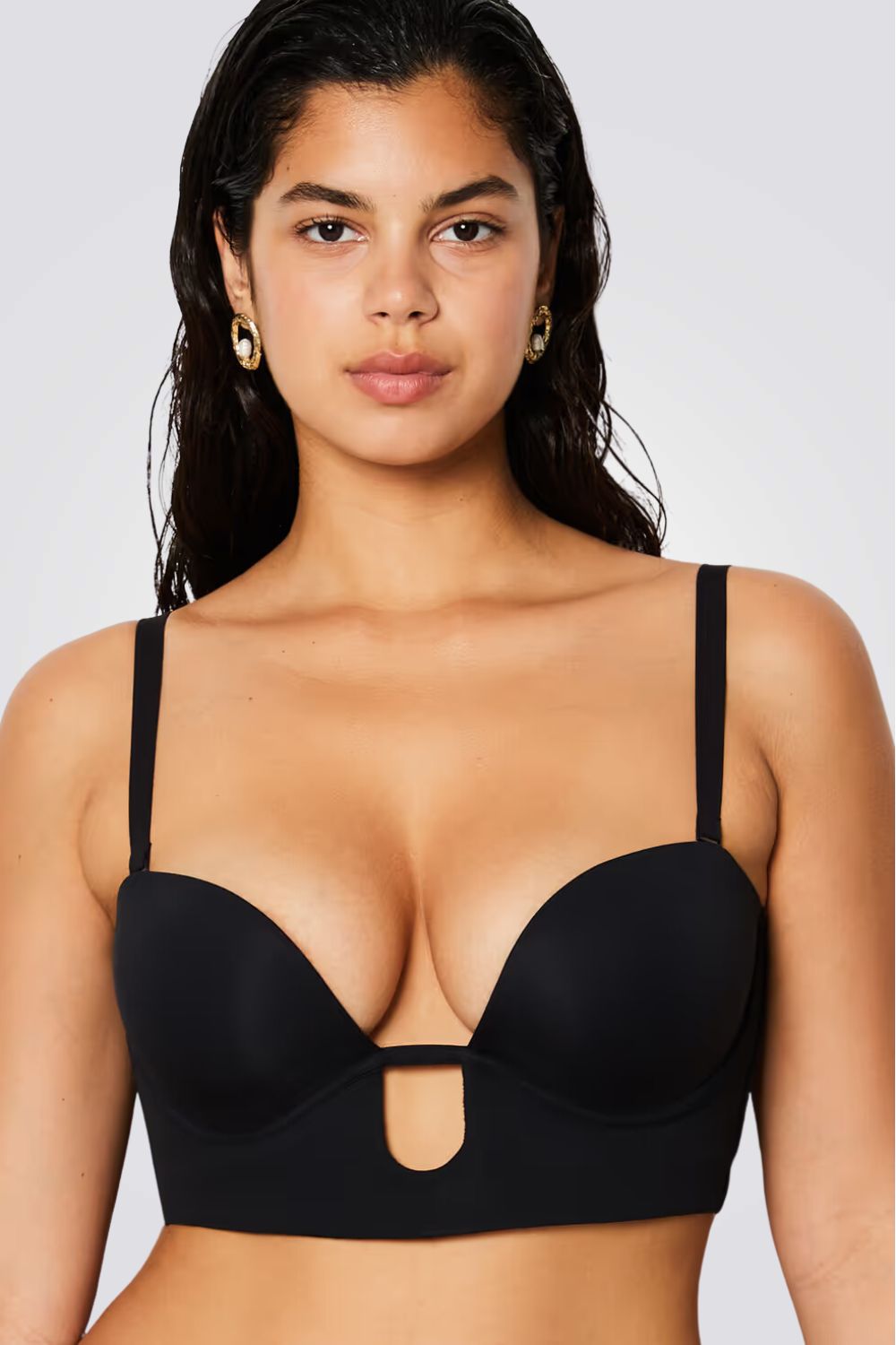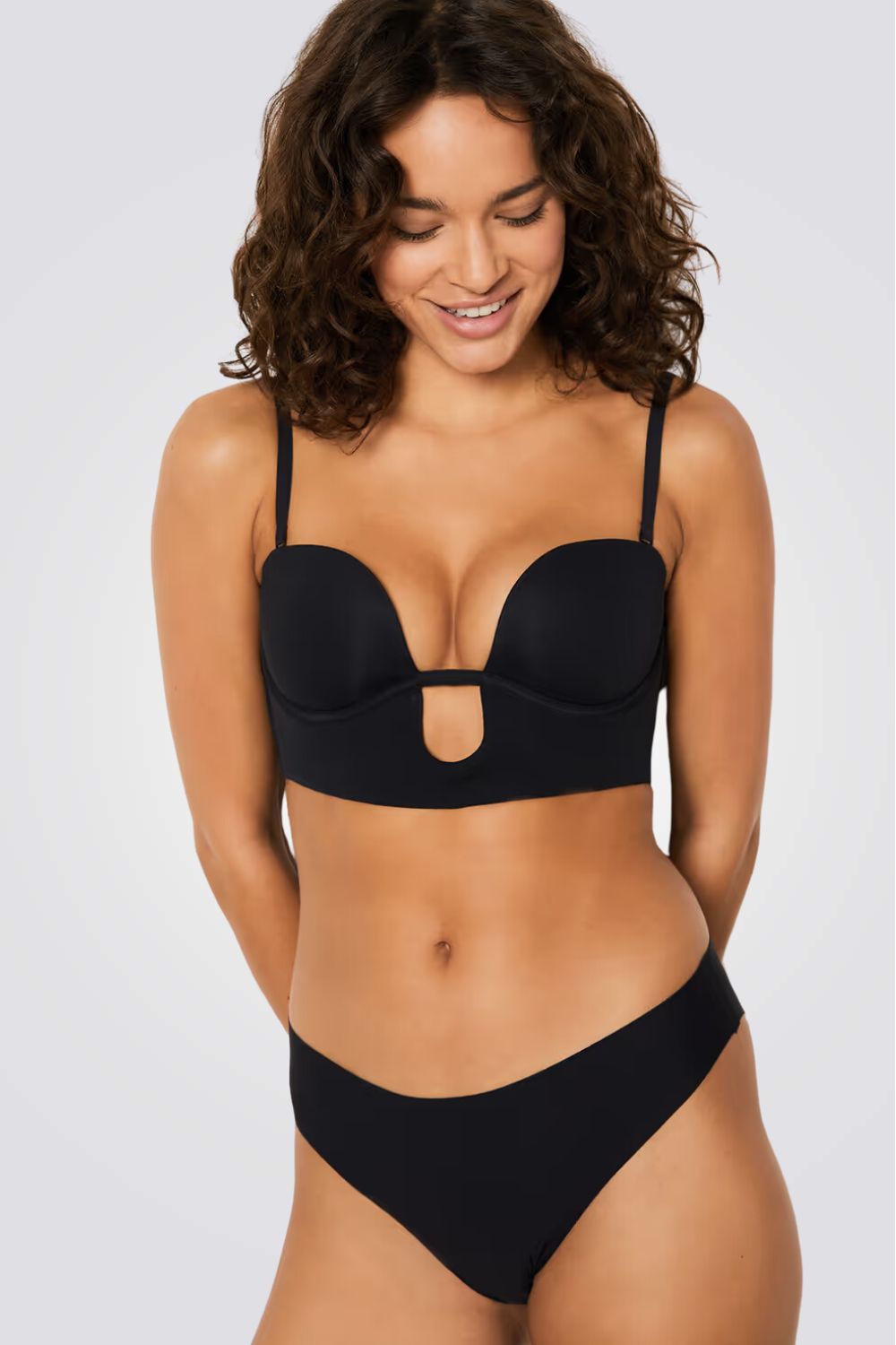 בעלת כתפיות דקות ומתכווננות, מחשוף עמוק וגב פתוח לאפקט בלתי נראה מתחת לבגדים.