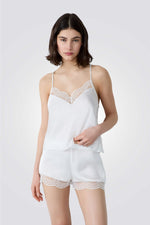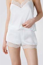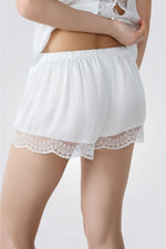 מכנסוני פיג'מה מבית המותג ETAM העשוייה בד סאטן רך ונעים, בעלי רצועת מותן אלסטית ועיטורי תחרה פרחוניים עדינים בקצוות.