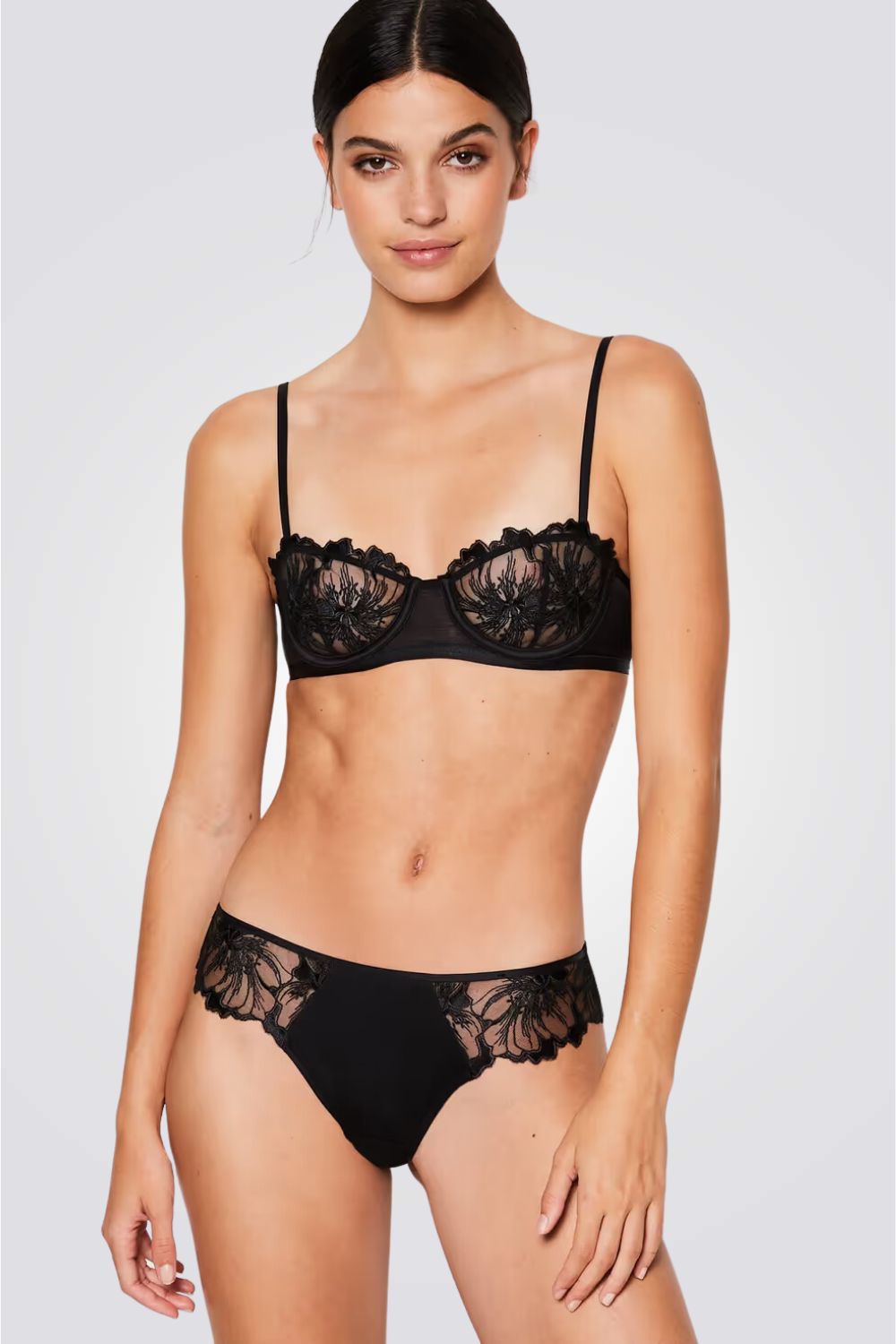 תחתוני היפסטר לנשים מבית המותג הצרפתי ETAM בעלי עיטורי תחרה פרחוניים עדינים באיזור המותניים ובטנה העשויה כותנה רכה ונעימה.