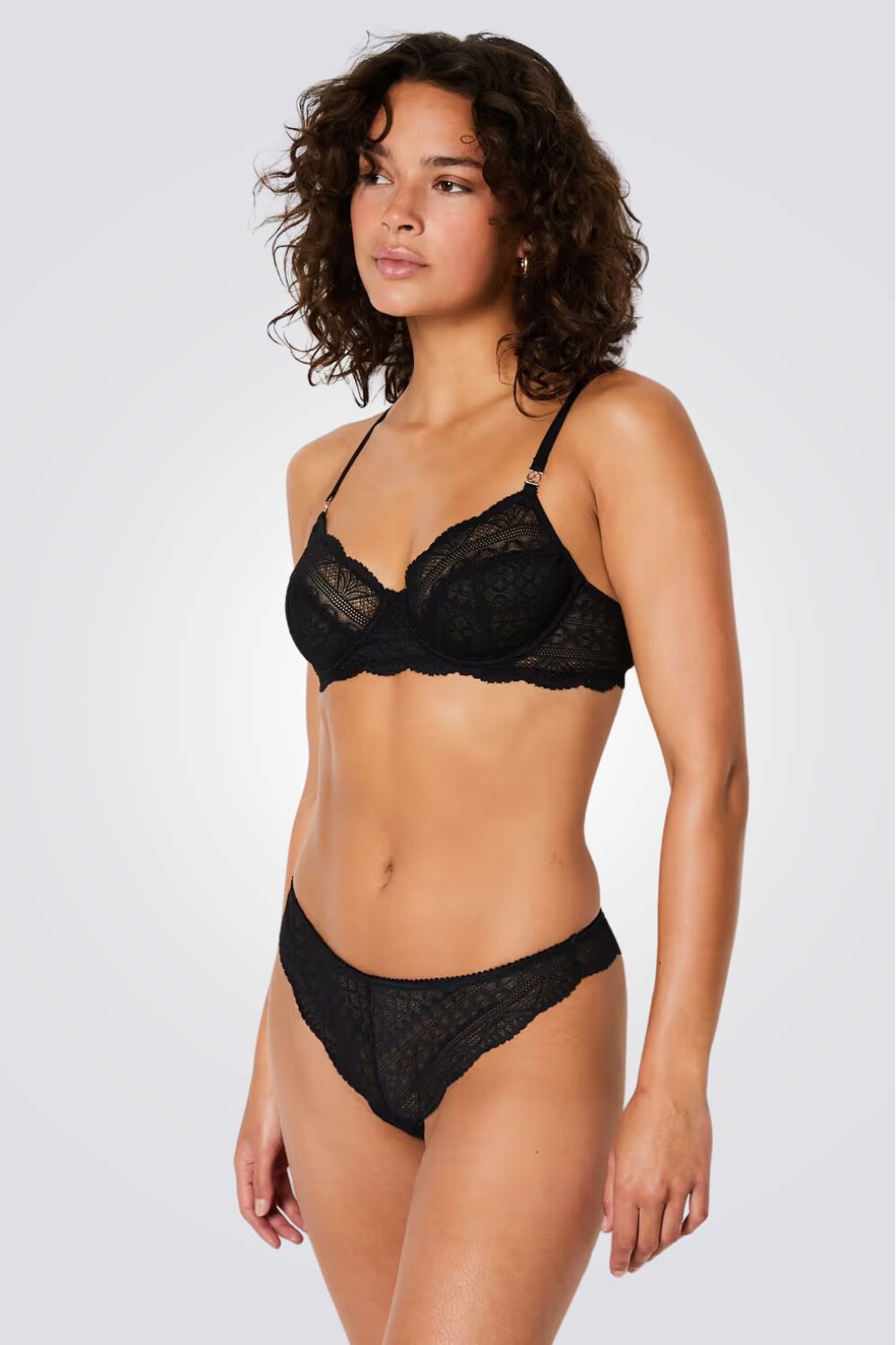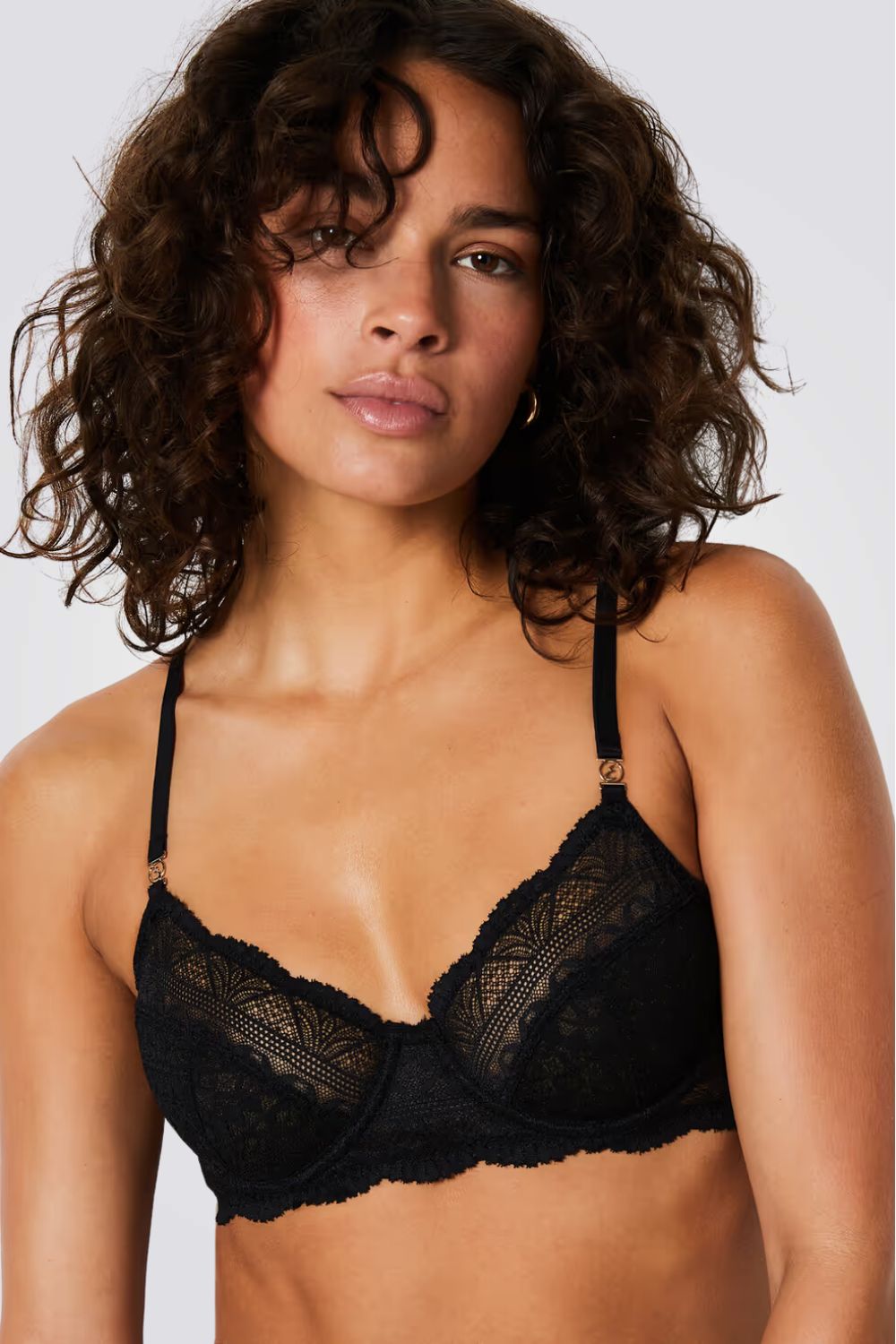 חזיית תחרה מבית המותג הצרפתי ETAM, ללא ריפוד, בעלת כתפיות מתכווננות, בעלת עיטורי זהב קטנים בכתפיות ובגזרה מחמיאה.