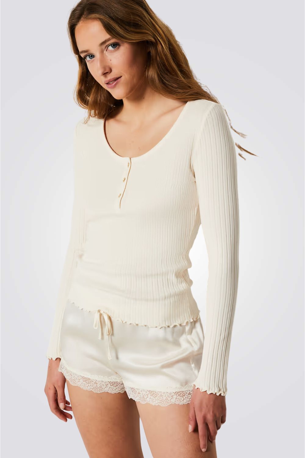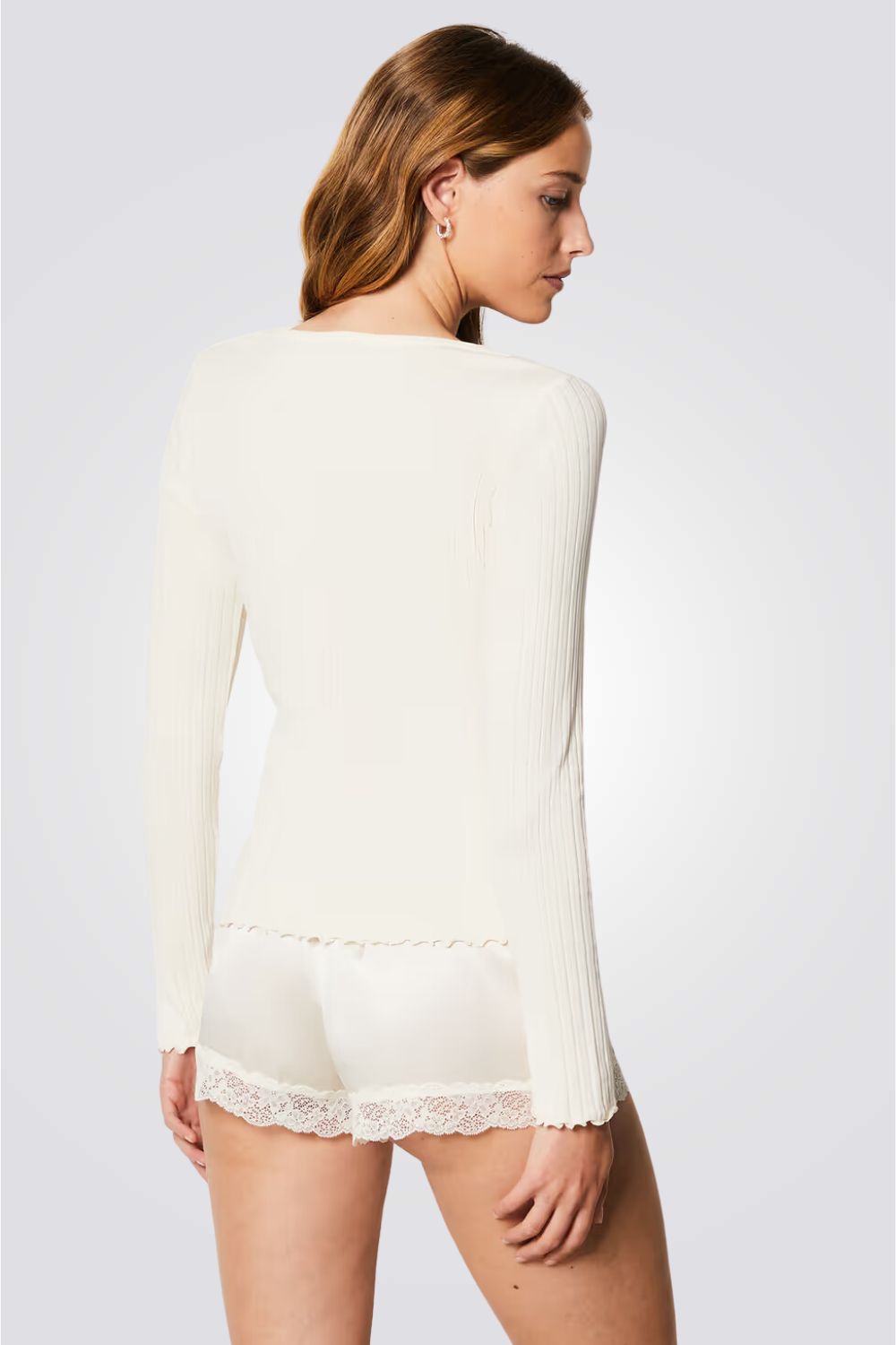 חולצת פיג'מה ארוכה LUCILE עם צאוורון עגול