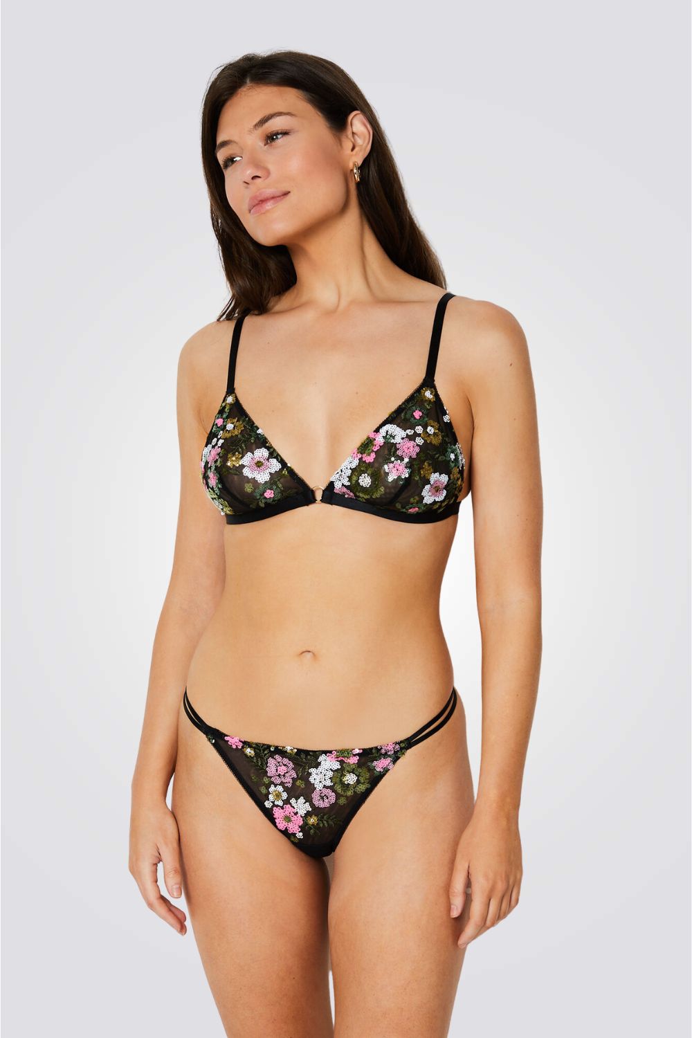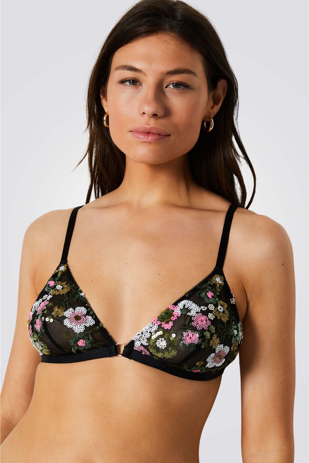 חזייה ללא ברזלים מבית המותג הצרפתי ETAM העשויה בד רשת דק ועדין עם עיצוב פרחוני העשוי פאייטים ובעלת רצועות דקות ומתכווננות לנוחות מקסימלית.