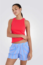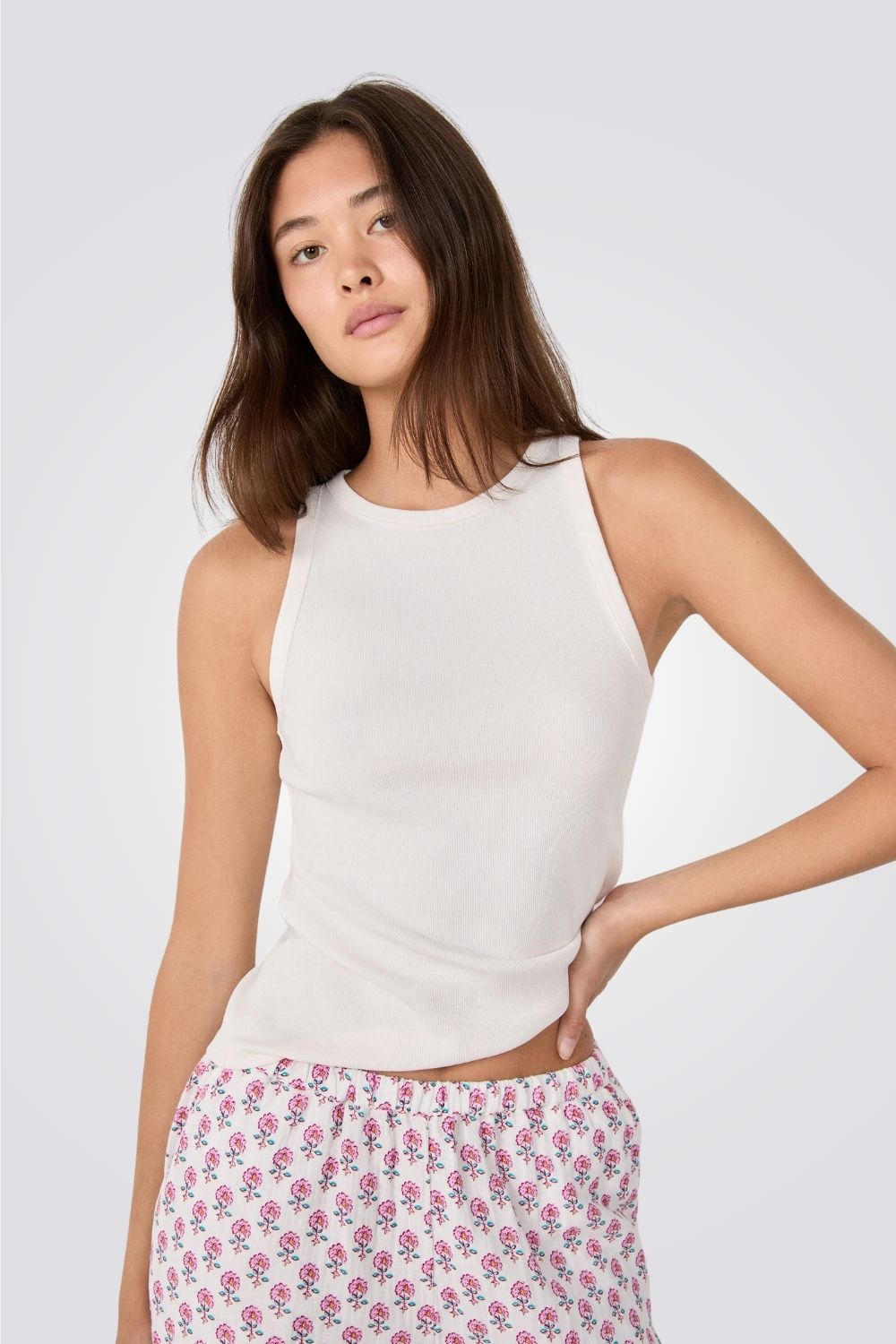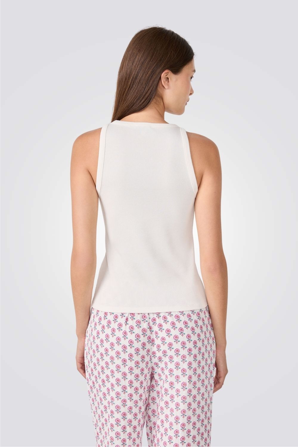 גופיית פיג'מה מבית המותג ETAM עשויה בד כותנה רך ונוח, בעלת צאוורון עגול, תפרים בולטים ובטקסטורת פסים עדינה.