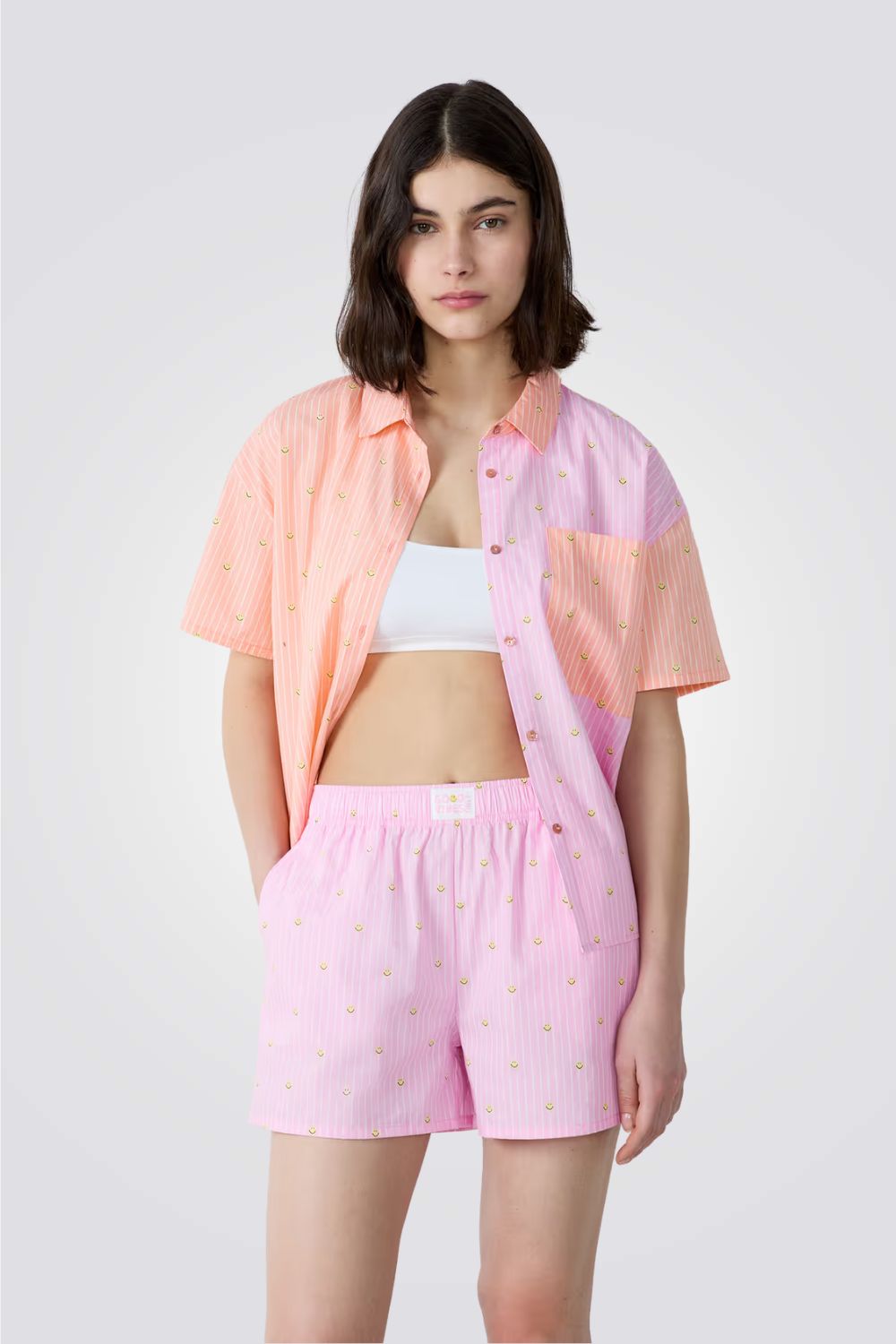 מכנסי פיג'מה קצרים VAHE בהדפס סמיילי
