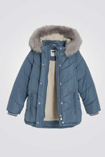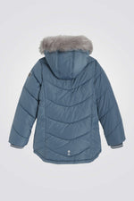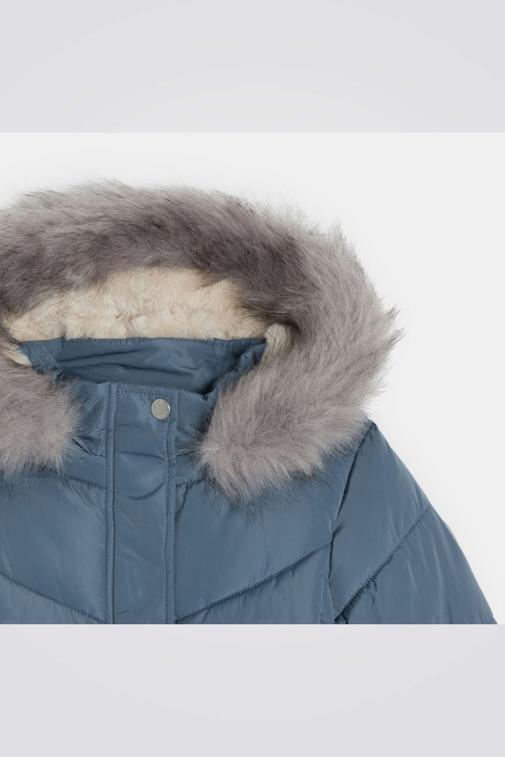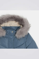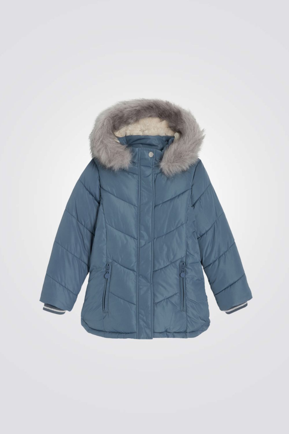 מעיל לילדות בצבע אפור עם כובע פרווה