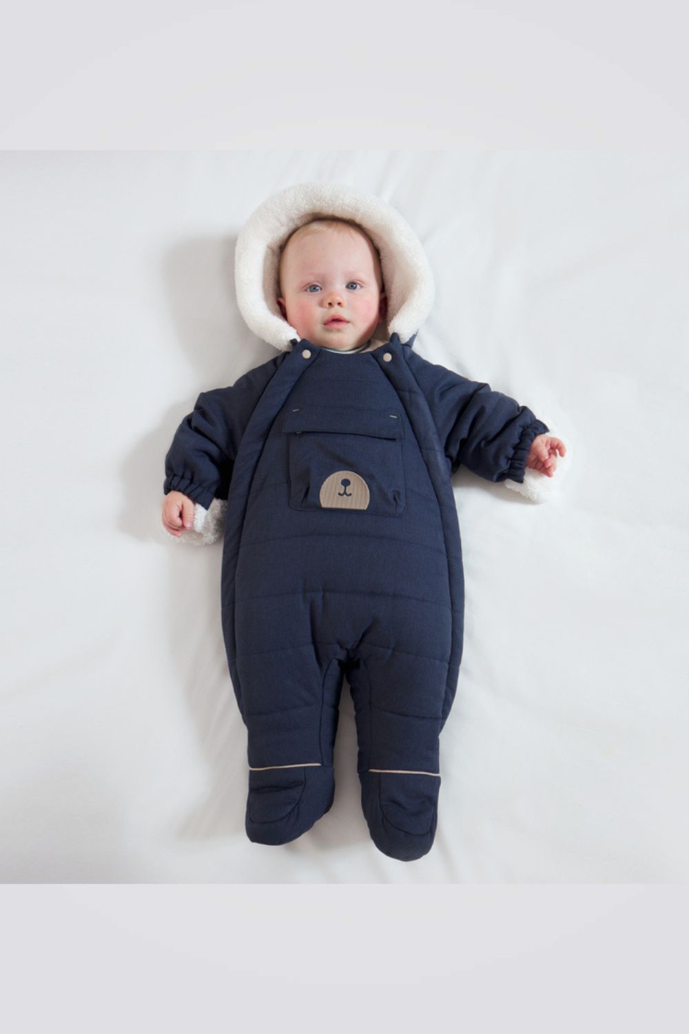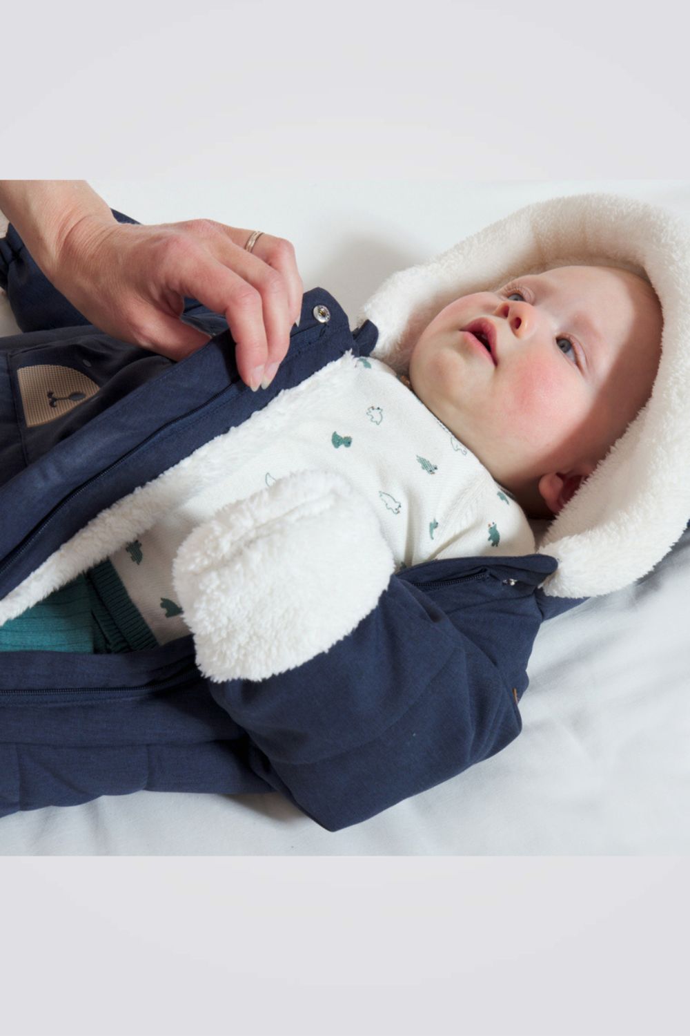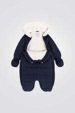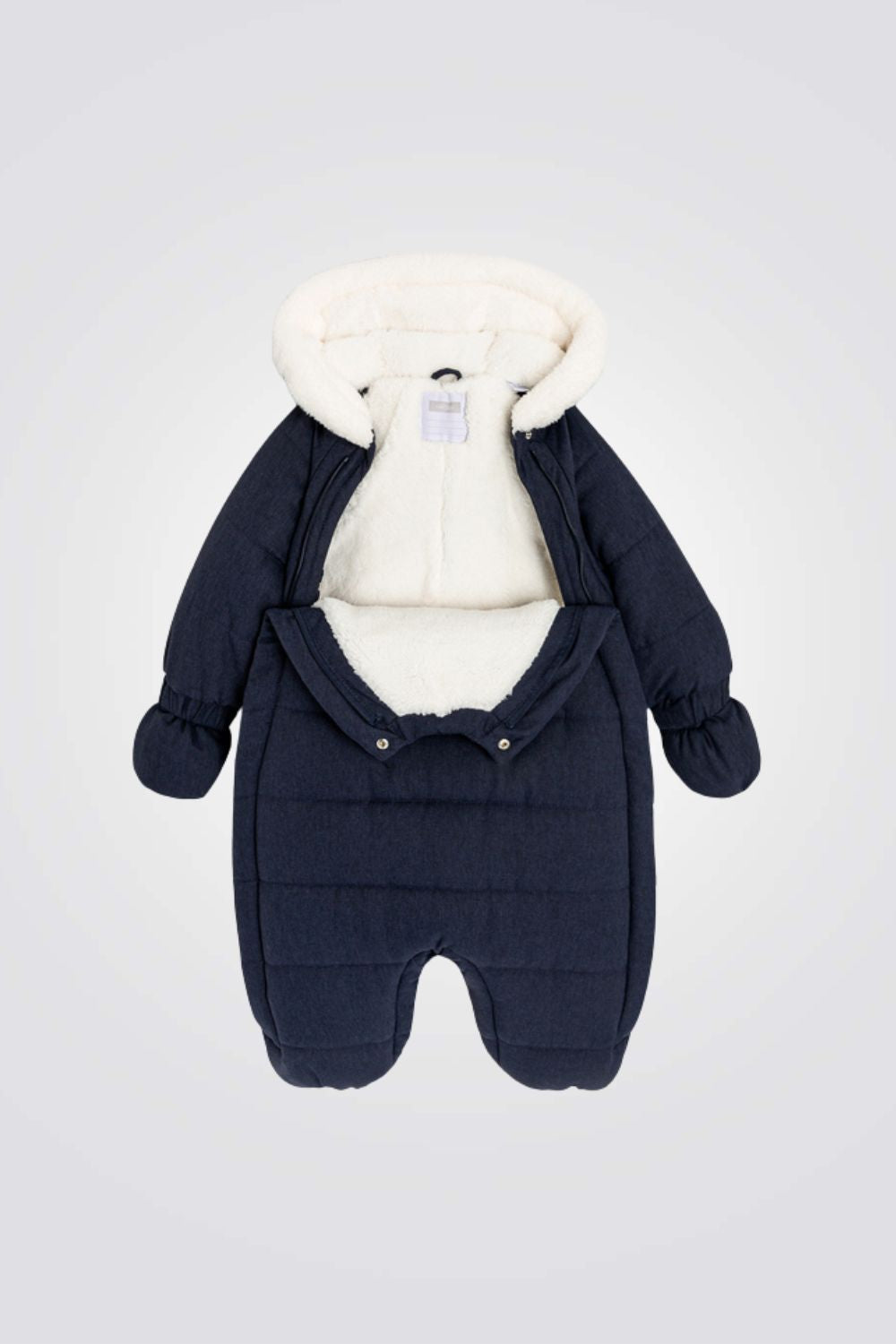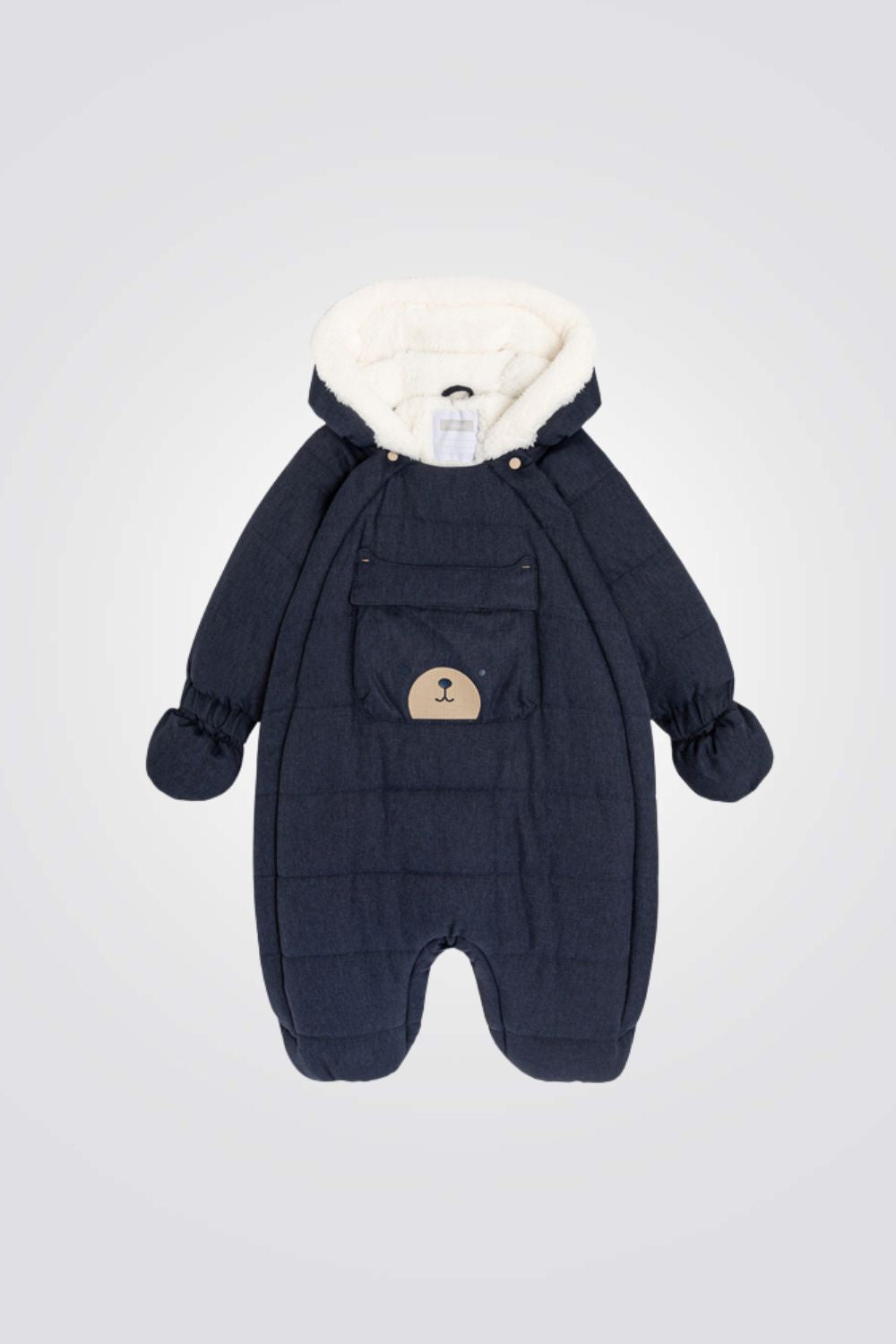 מעיל אוברול לתינוקות בצבע נייבי עם דובי מקדימה