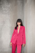 בלייזר מבית המותג KENNETH COLE לנשים בצבע ורוד, מעוצב בגזרה מחויטת המעניקה מראה אלגנטי, בעל שרוולים ארוכים עם סיומת כפתור, צווארון קלאסי, סגירת כפתר בחזית ושני כיסים דקורטיביים בצדדים.