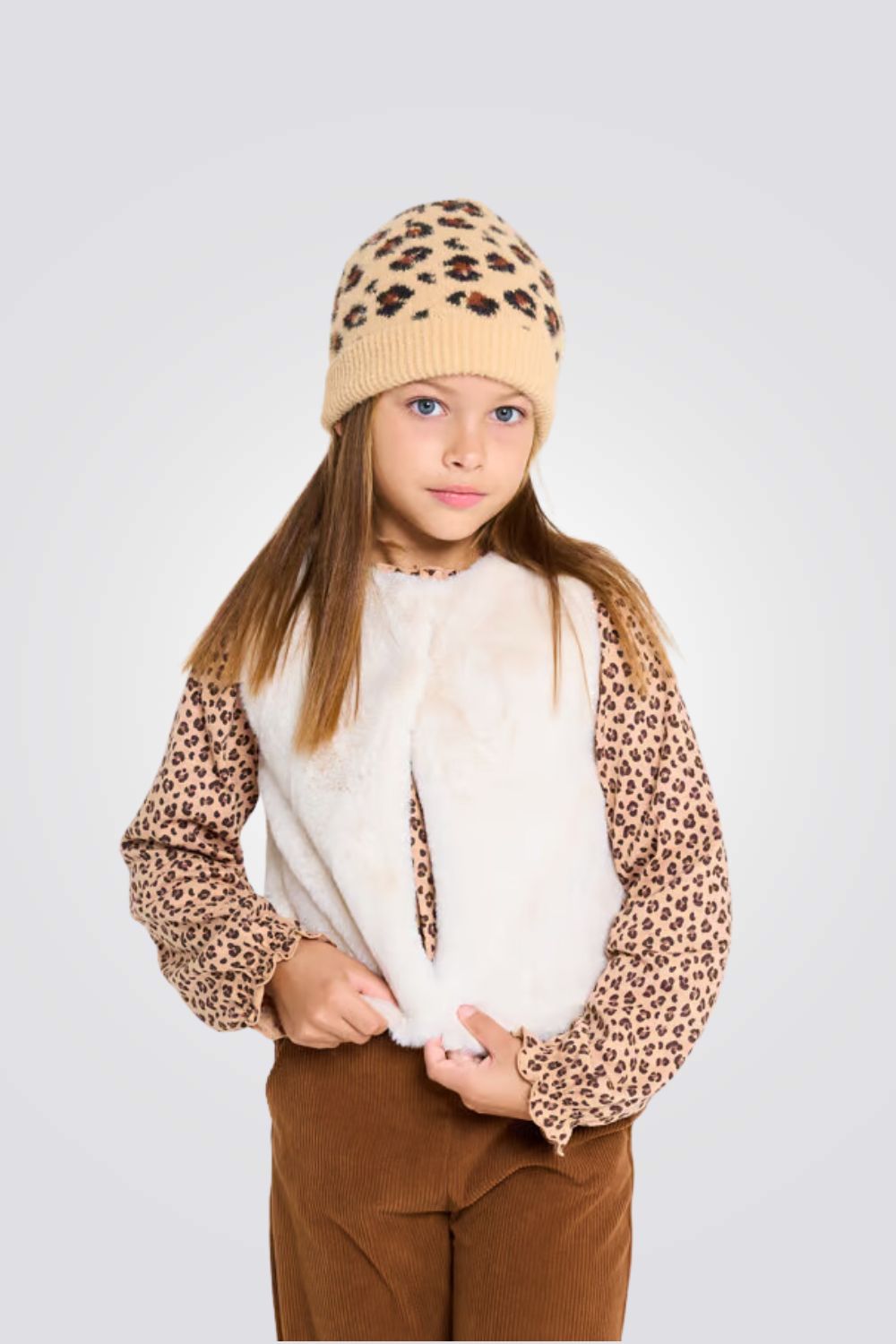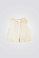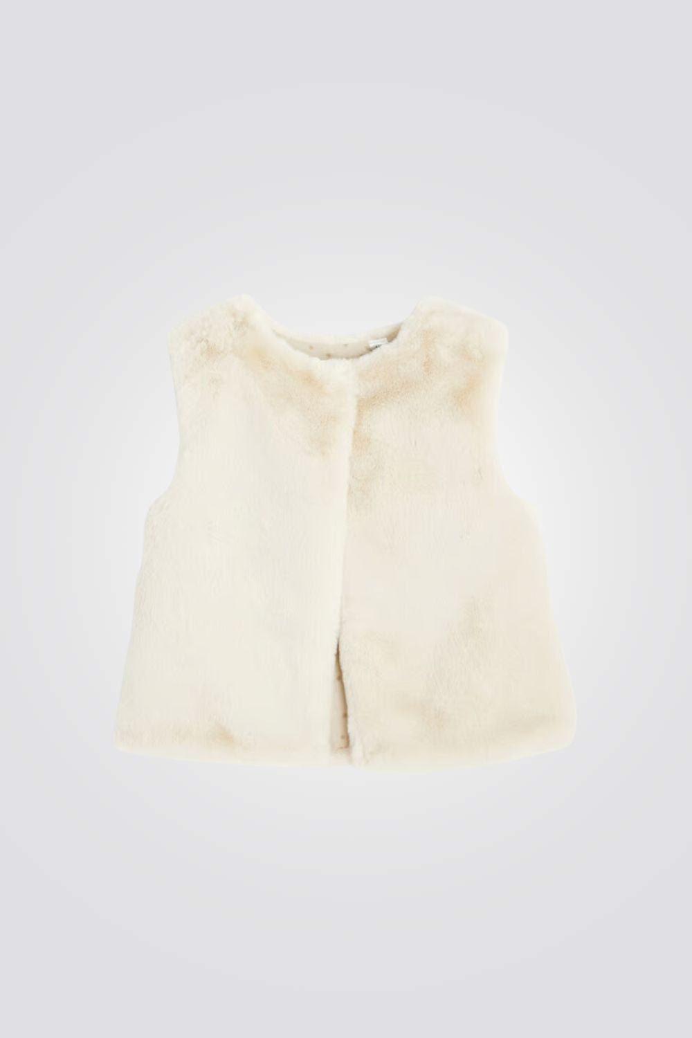 ווסט דמוי פרווה לילדות מבית המותג OKAIDI, עשוי מפרווה מלאכותית מחממת ונעימה, עם סגירה נסתרת ללא שרוולים.
