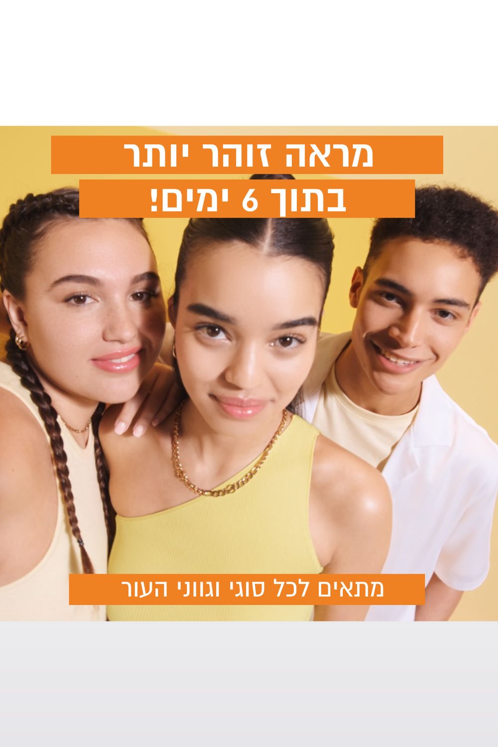מסייע בהפחתת 43%- מנראות הכתמים הכהים על עור הפנים, בהשוואה לעור סביבם***.