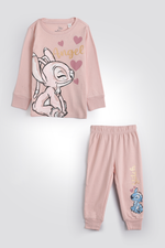 סט פיג’מת מעבר לילדים מבית המותג DELTA העשוי מבד אינטרלוק נעים ודק לעונת המעבר עם הדפס מדליק סטיץ ואנג’ל. חולצה עם צווארון עגול, שרוולים ארוכים וסיומת מנג’ט ומכנסיים ארוכים עם גומי במותניים וסיומת מנג’ט.