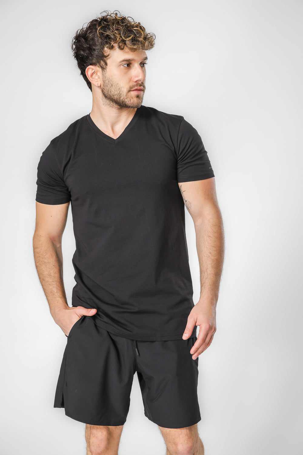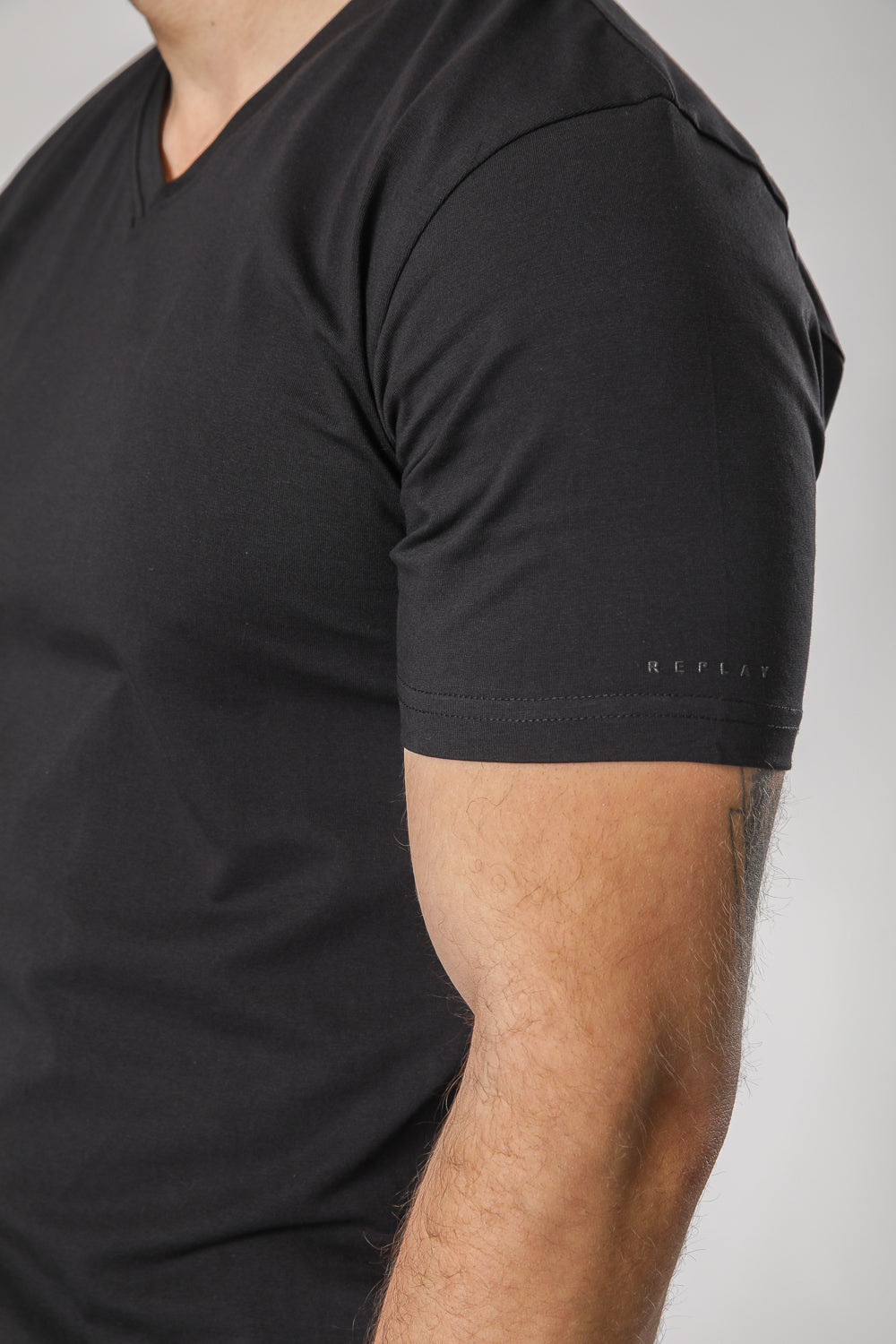חולצת טישירט שחורה עם צווארון V מבית REPLAY.