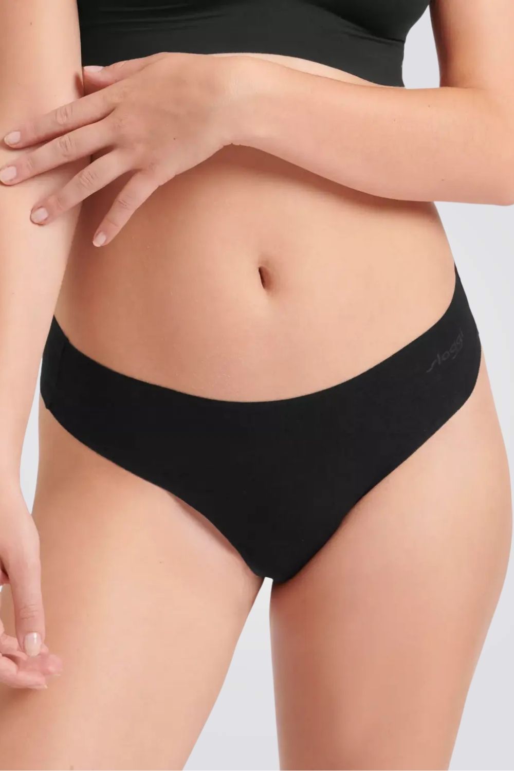 תחתוני חוטיני מבית המותג SLOGGI, בצבע שחור, מבד רך ונמתח לנוחות מקסימלית, בלתי נראה מתחת לבגדים צמודים