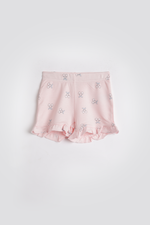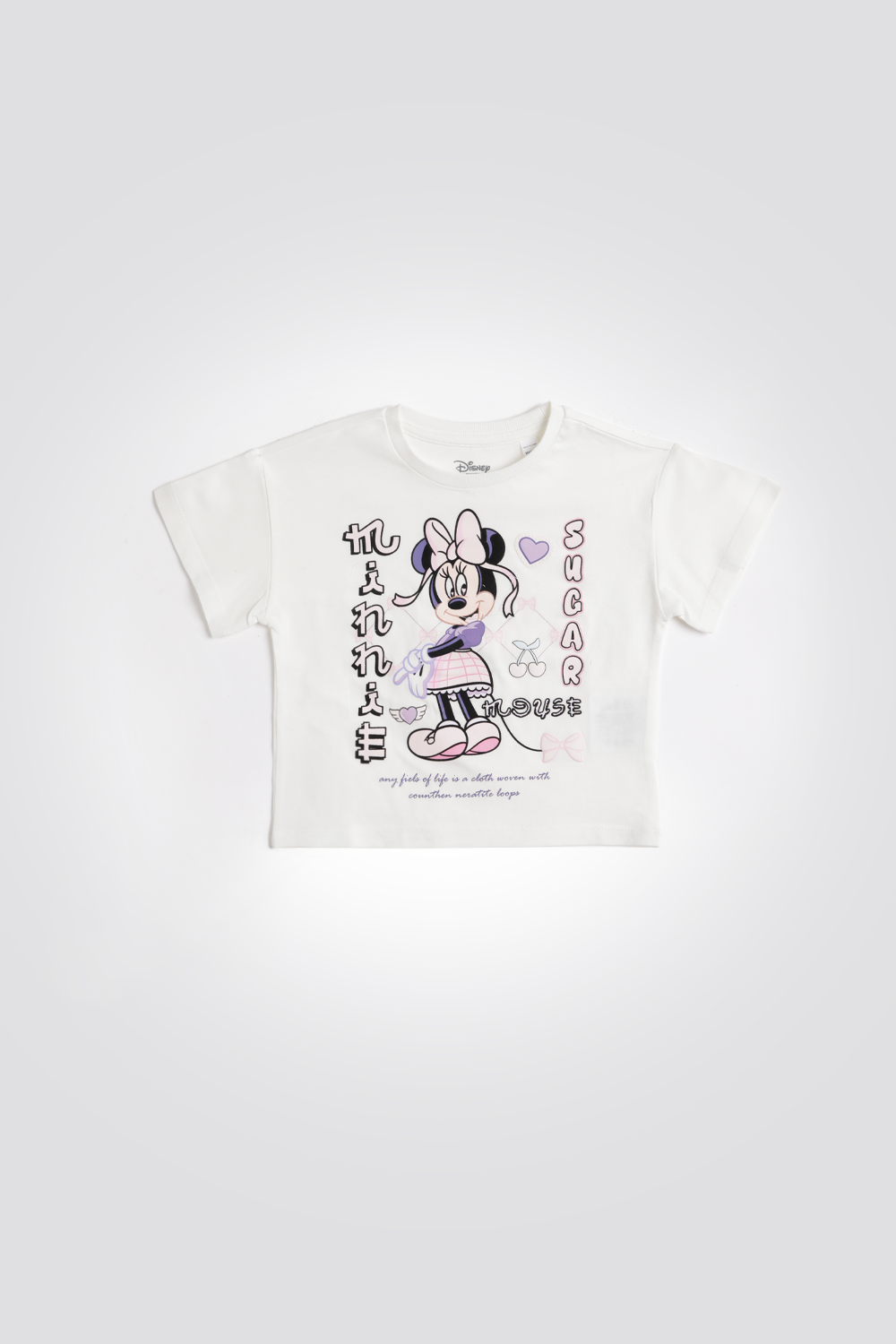 סט פיג'מת קיץ לילדות מבית המותג DELTA העשויה מבד אריג דק ונעים בהדפס מתוק של מיני מאוס. חולצה עם צווארון עגול ושרוולים קצרים ומכנסיים קצרים תואמים עם גומי במותניים ושרוכי קשירה.