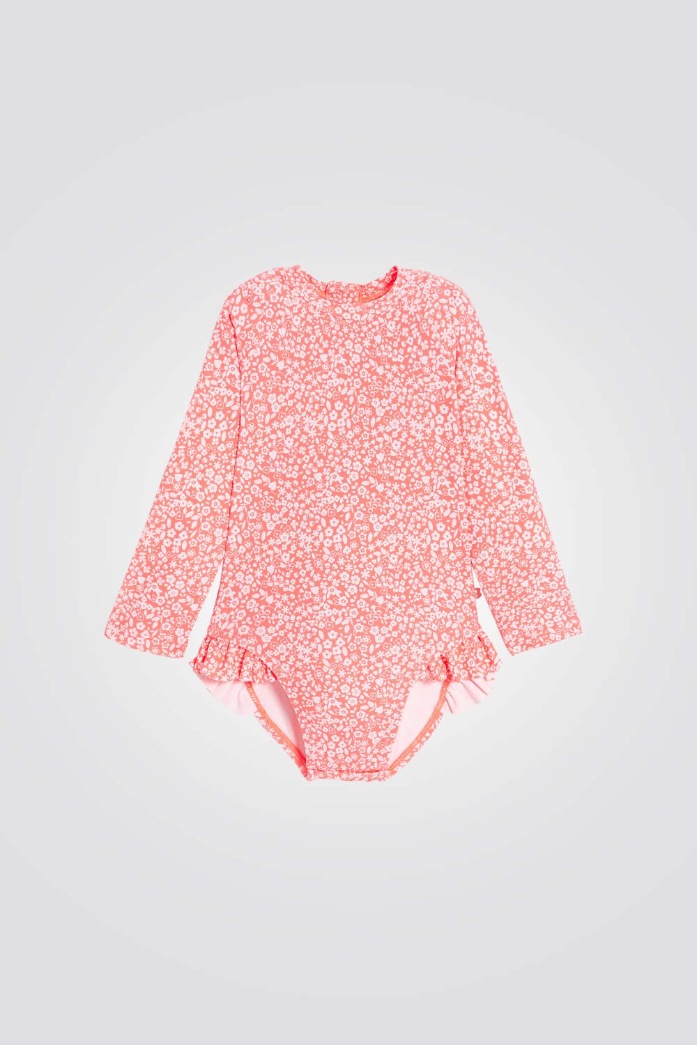 בגד ים שלם לתינוקות בהדפס פרחוני כתום