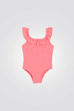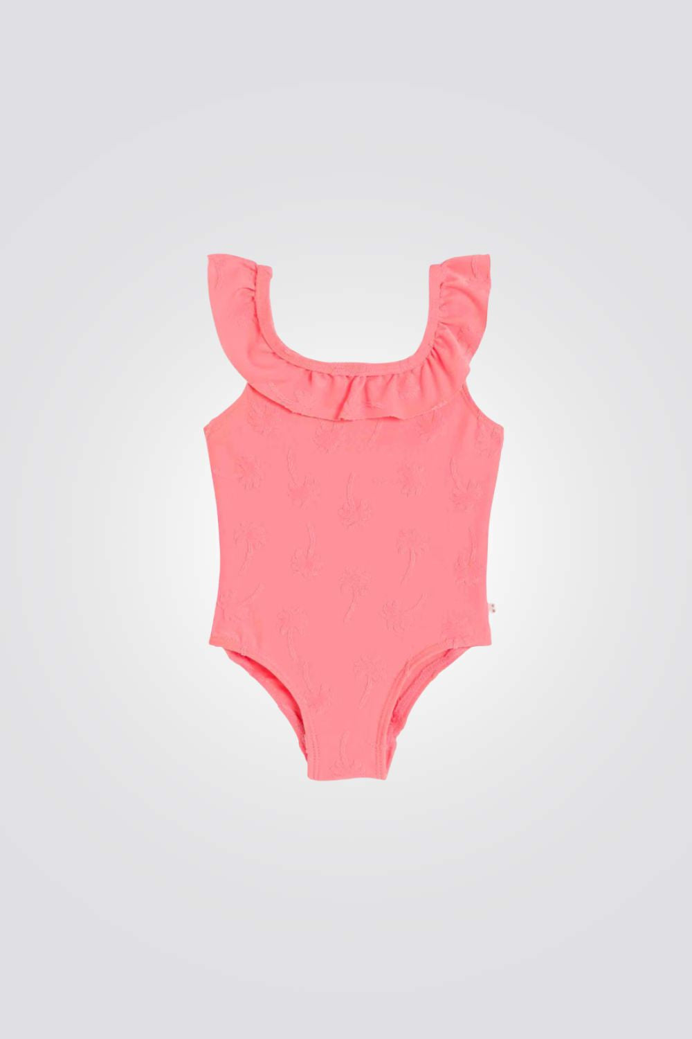 בגד ים לתינוקות מבית המותג OBAIBI, עם הדפס קיצי של עצי דקל, עשויה מבד המתייבש במהירות.