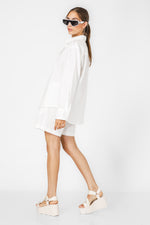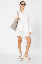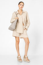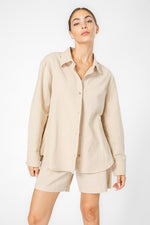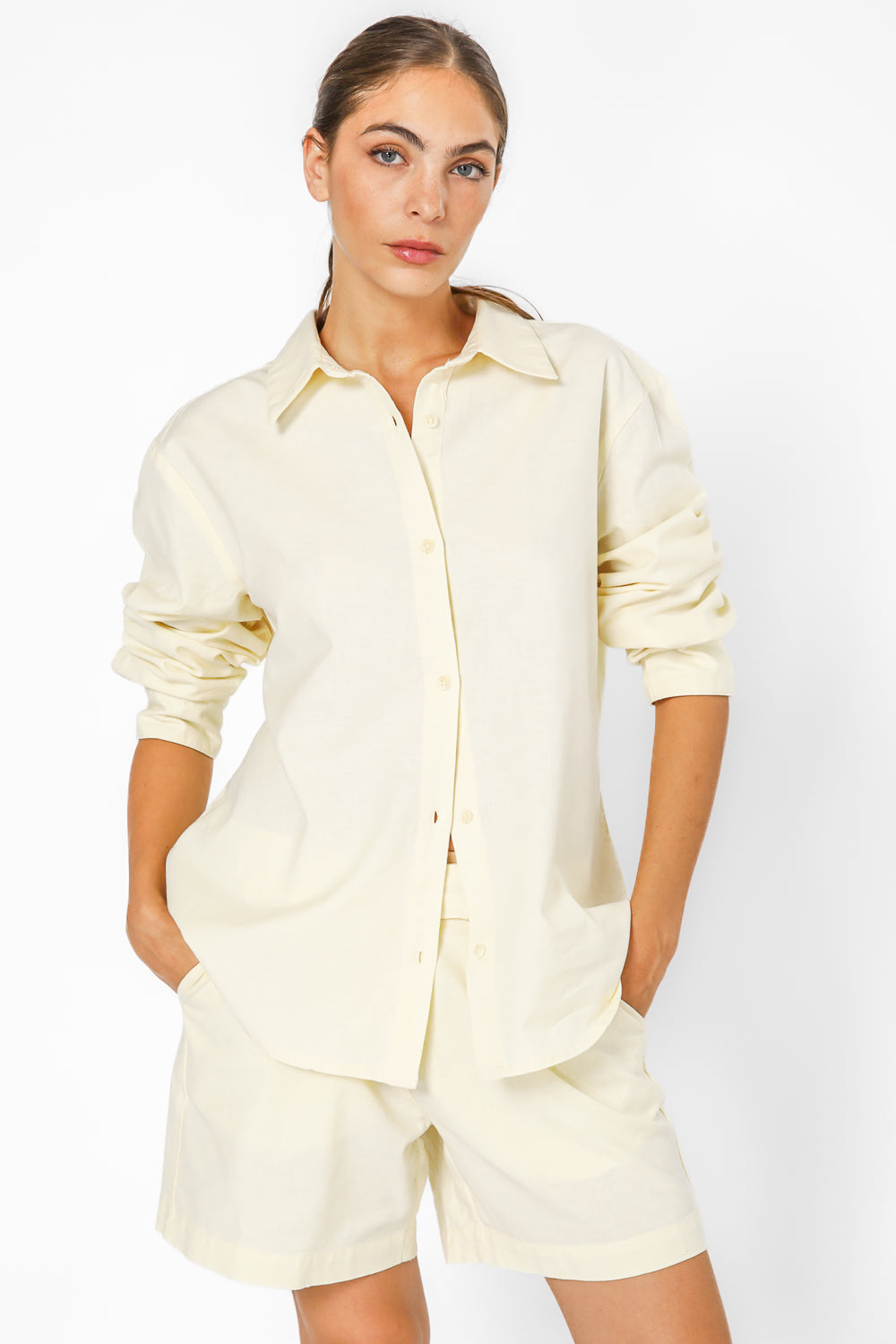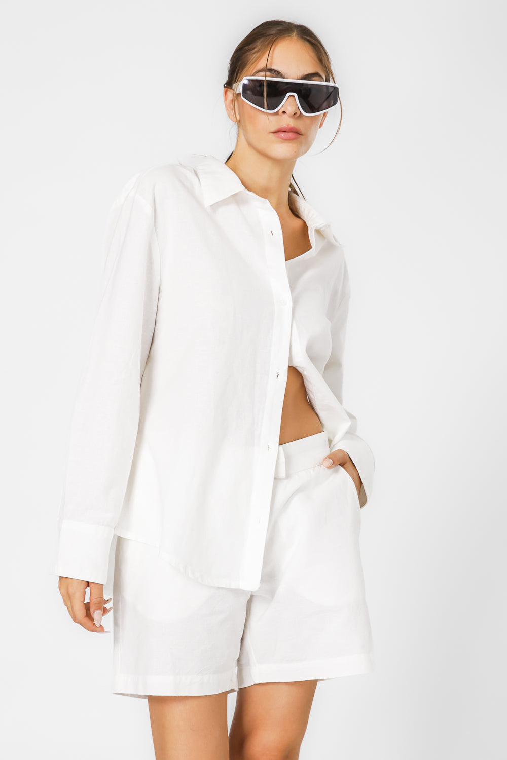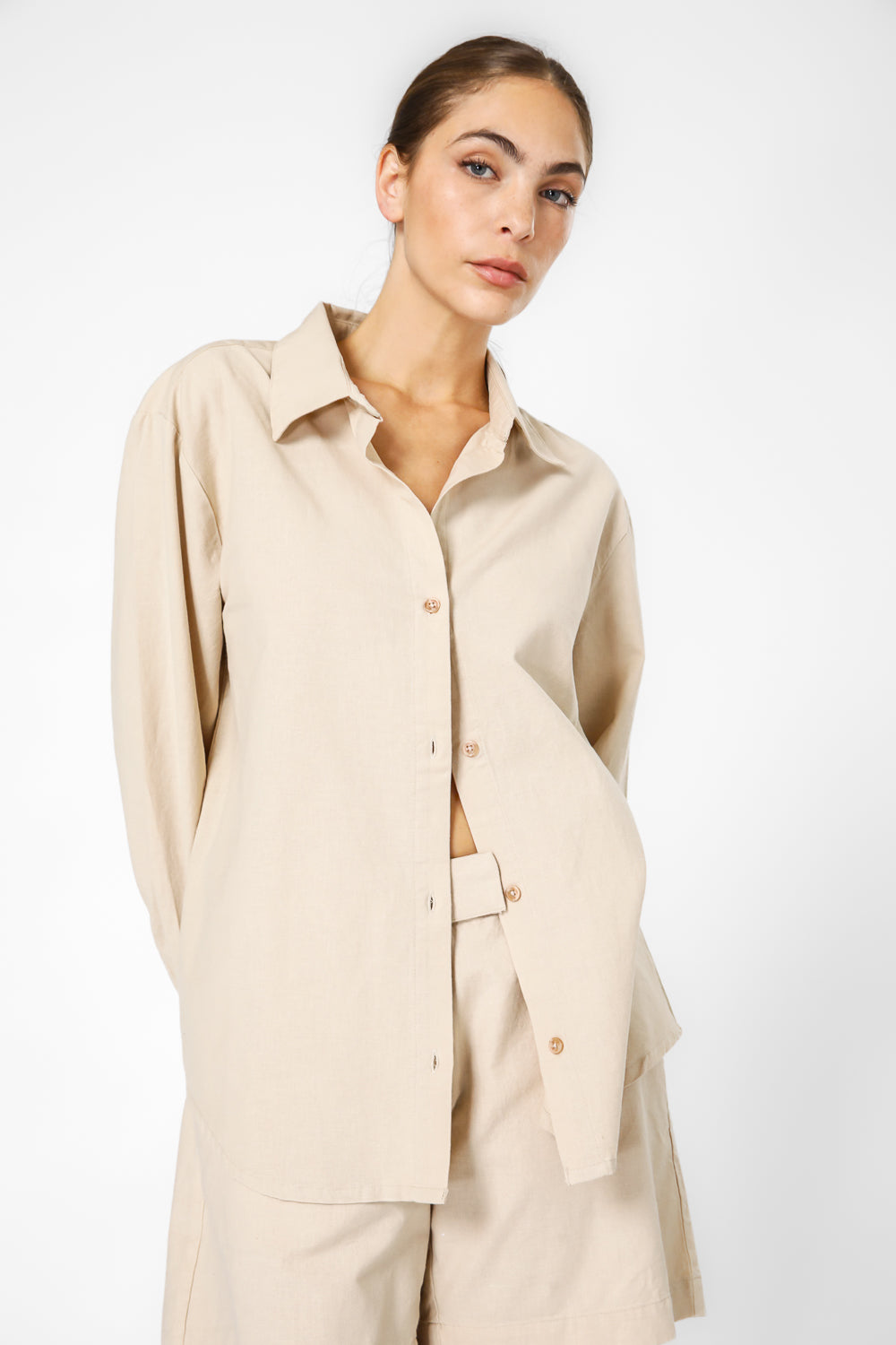 חולצה מכופתרת ארוכה לנשים במראה פשתן
