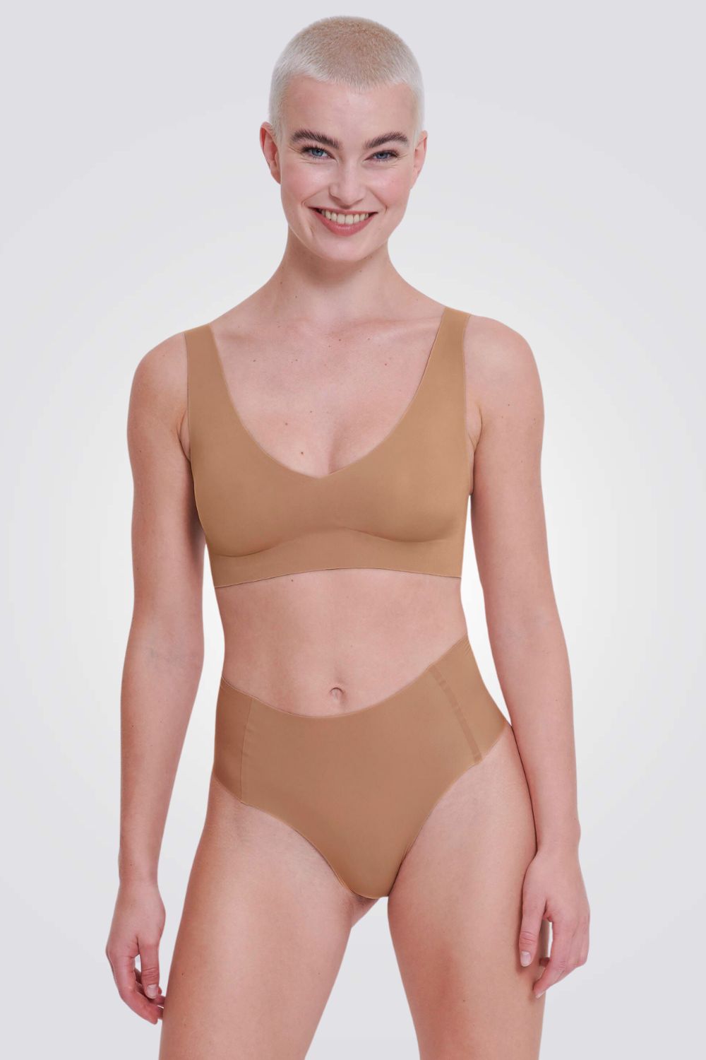 חווה את התחושה האולטימטיבית של חופש - ונוחות - עם ZERO Feel Bralette. חתוך ממיקרופייבר ממוחזר עדין במיוחד, הוא חלק לחלוטין עם טכנולוגיית הדבקת נקודות חדשנית על הרצועות והצדדים המעניקה התאמה ללא צביטה ואי נראות מוחלטת מתחת לבגדים.