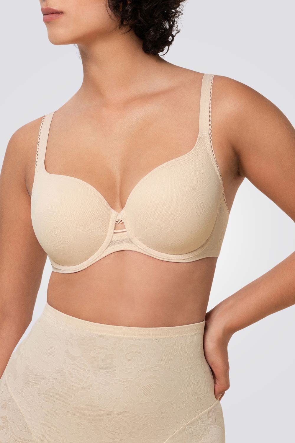 חזייה מרופדת מבית המותג TRIUMPH בצבע בז'.