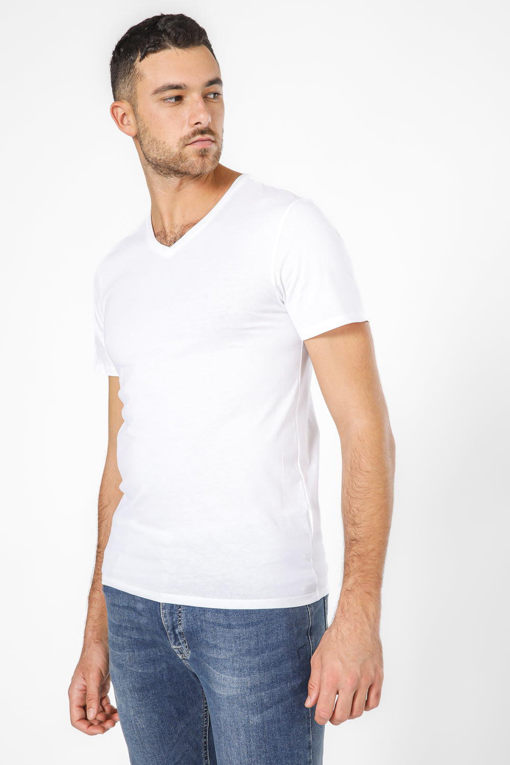 מארז 3 חולצות בייסיק צאוורון V בצבע לבן