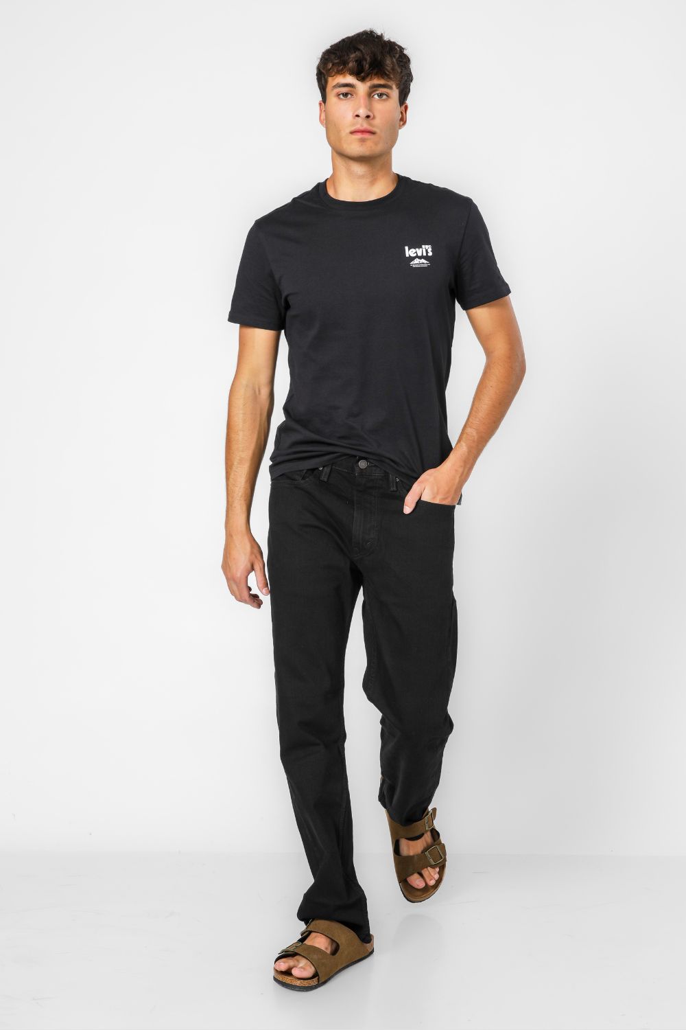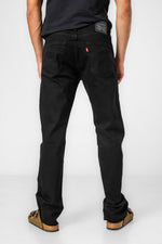 מכנסי גינס שחור בגזרה מחמיאה של המותג האייקוני Levis מדגם 505 מכנסיים . סגירת רוכסן וכפתור, בגזרת חמשת הכיסים הקלאסית.